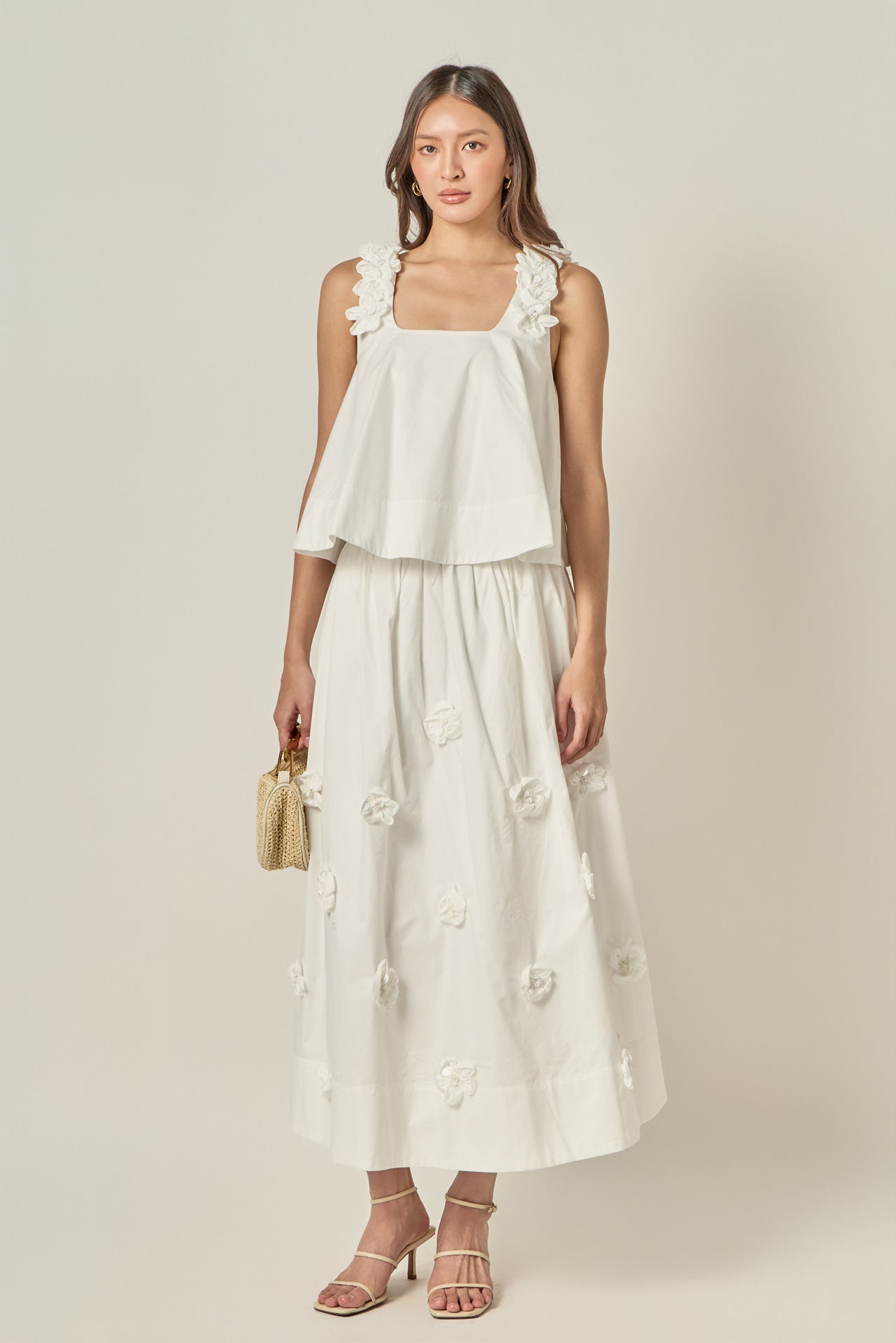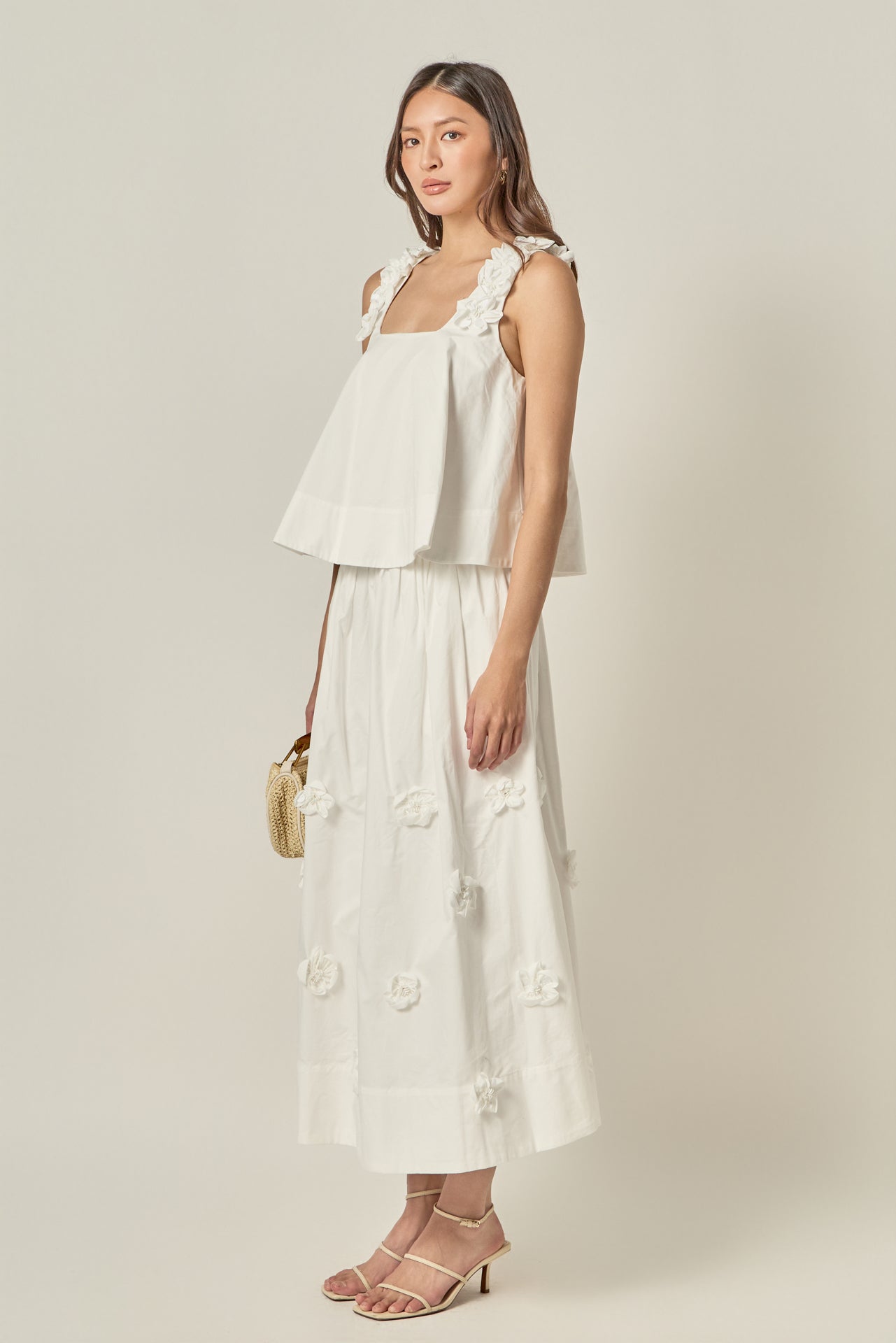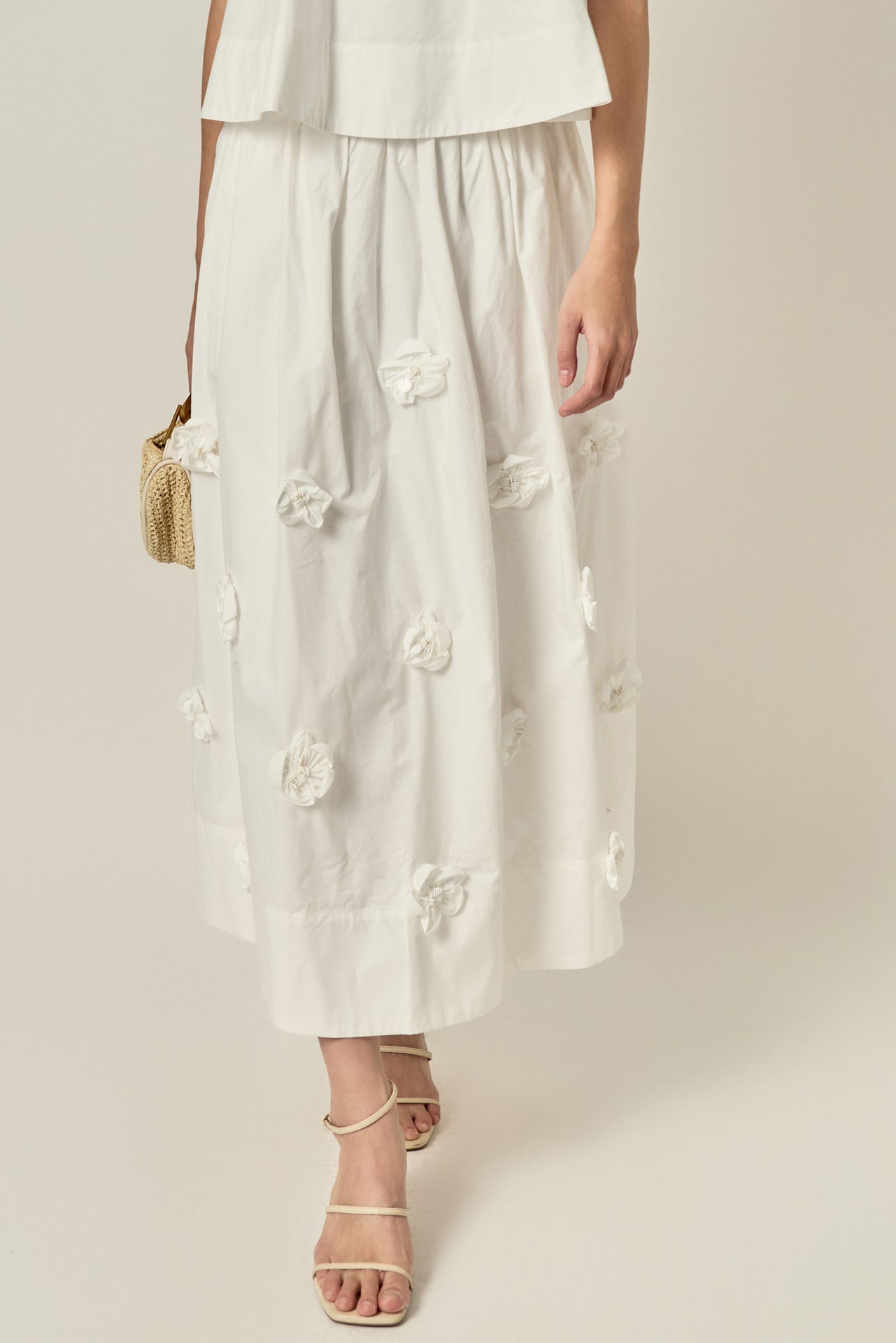 Make a statement in our 3D Flower Midi Skirt - where timeless elegance meets modern romance. This French-inspired silhouette falls gracefully at midi length, designed to flatter with soft volume and movement. Adorned with delicate 3D floral appliques throughout, each bloom adds texture and a whimsical charm to your look. A smooth side invisible zipper allows for effortless wear, while the full lining ensures all-day comfort. Whether styled for brunch or an evening event, this skirt brings a graceful, feminine touch to any outfit.