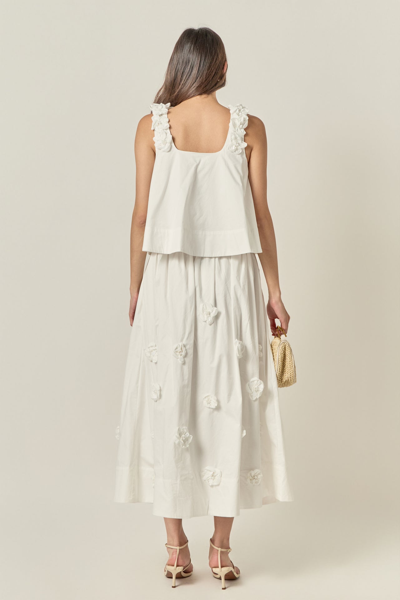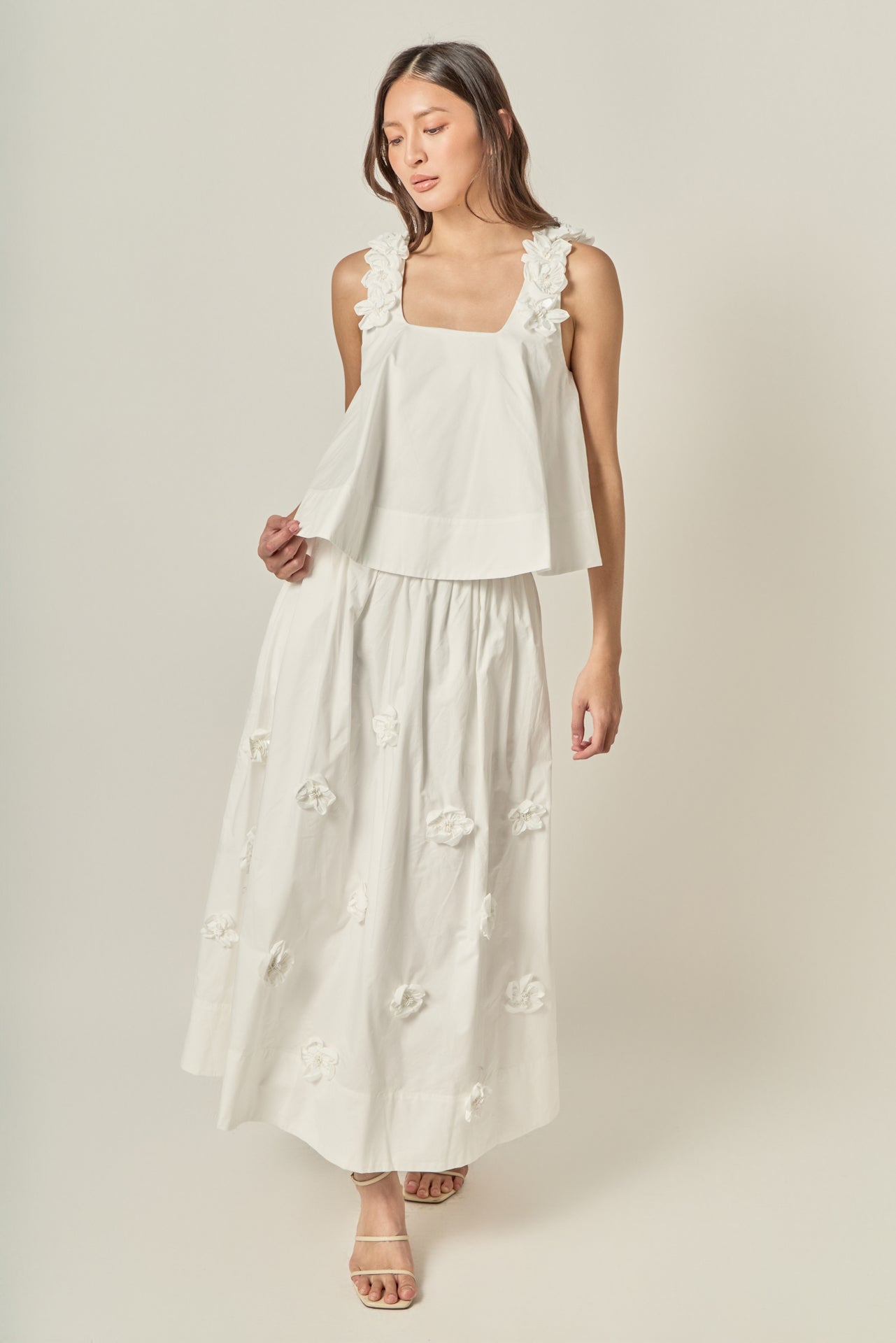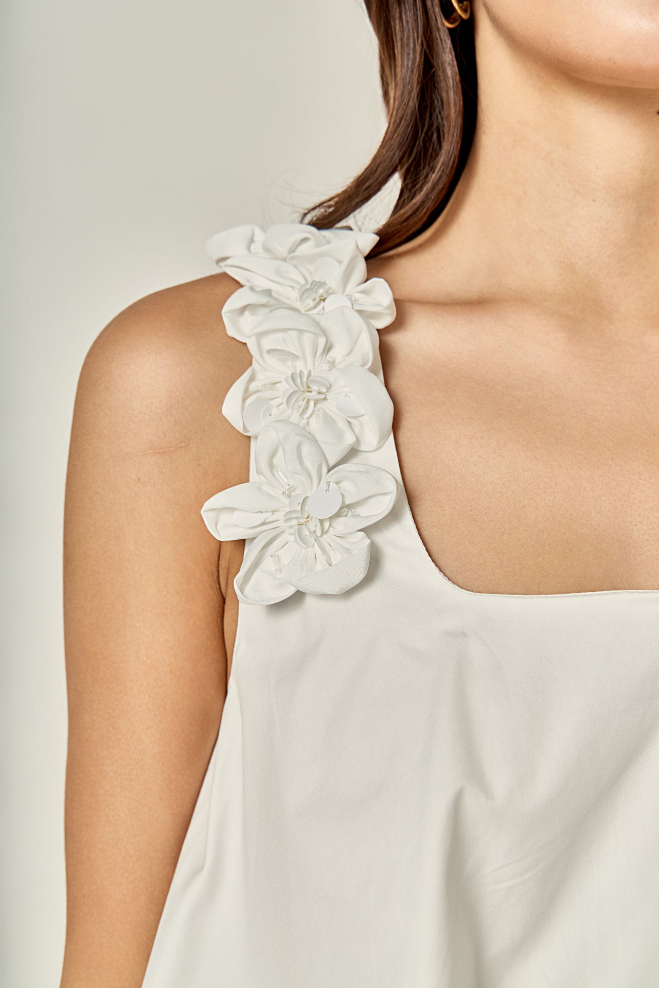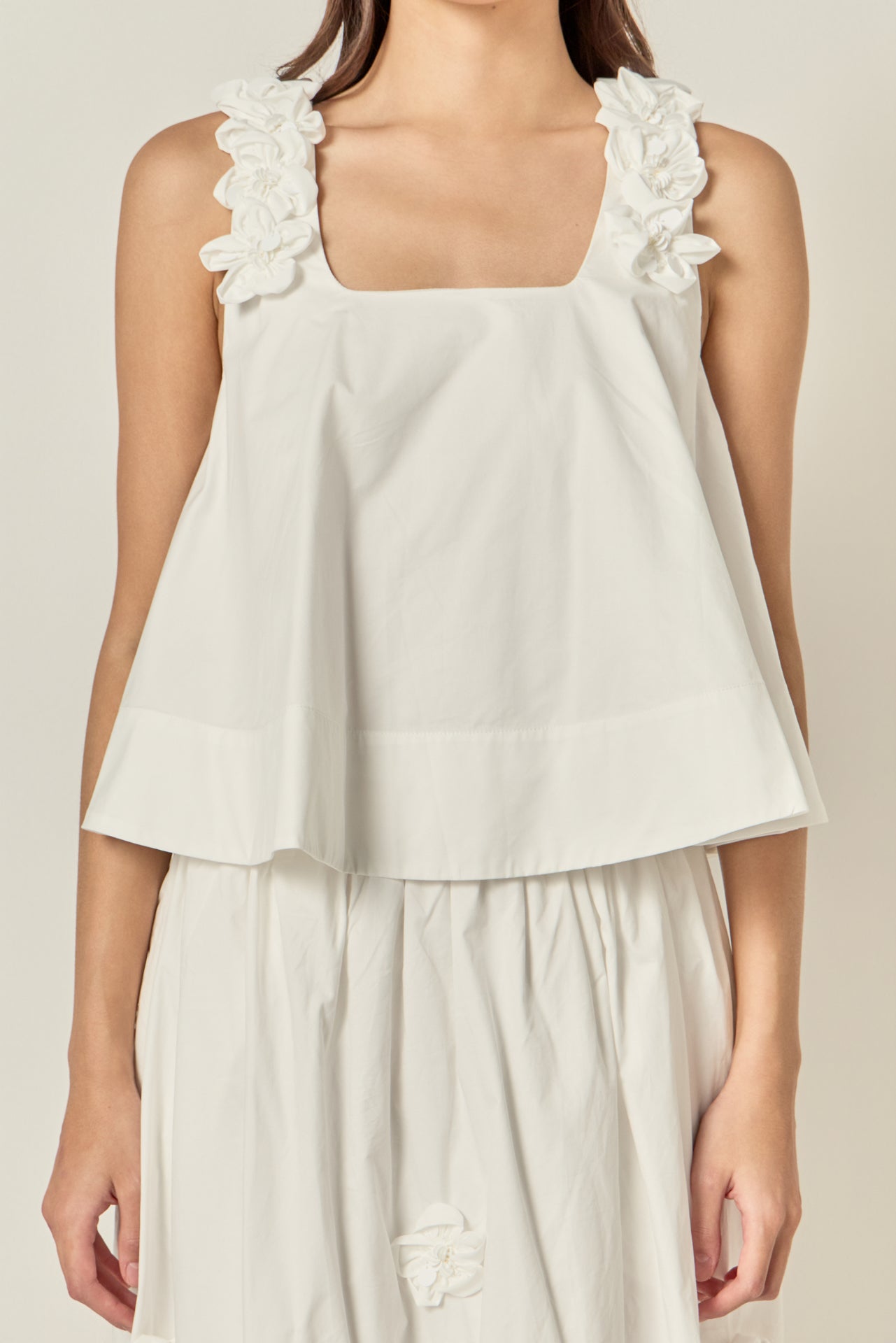 Add a touch of romance to your wardrobe with our 3D Flower Sleeveless Top.Crafted with a clean, structured silhouette, this top features a flattering U neckline and a sleeveless cut that's both modern and timeless. The standout detail? Dimensional 3D floral appliques blooming across the shoulder straps, bringing texture and elegance to the minimalist design. Whether paired with tailored trousers or a flowy skirt, this piece effortlessly elevates your everyday look with a soft, feminine charm.