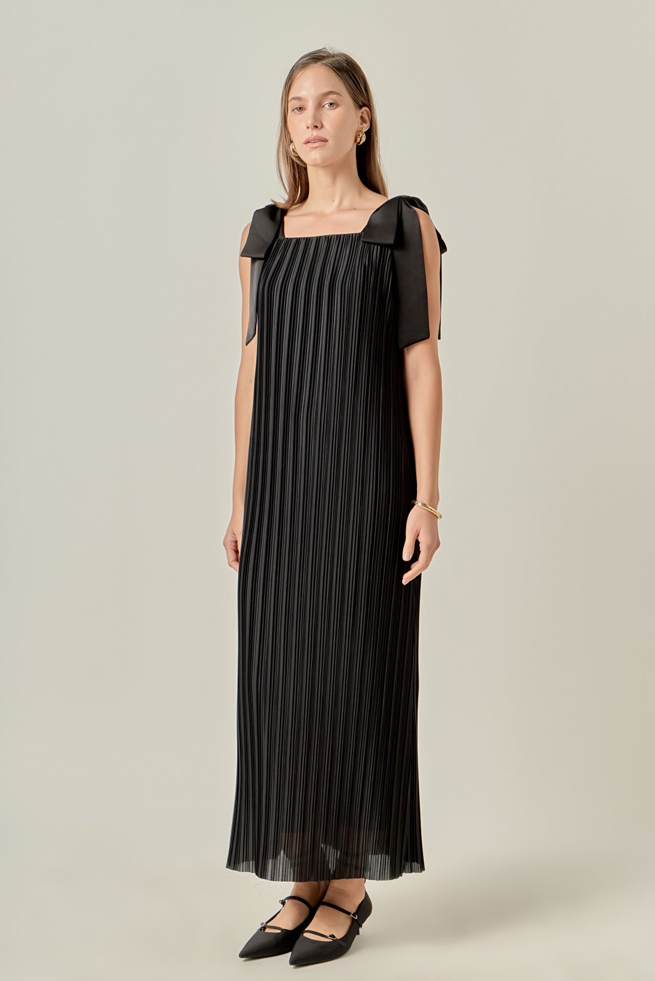 Effortlessly elegant, our Bow Detailed Pleated Maxi Dress is a must-have for any fashion-forward wardrobe. This sleeveless maxi dress boasts stunning pleat details that add texture and movement to the flattering silhouette. The maxi length creates a flowy, sophisticated look while the lining ensures a comfortable and smooth fit. Perfect for any occasion, this dress is a versatile statement piece that will make you stand out. From weddings to date nights, it's a show-stopping outfit that is sure to receive endless compliments.