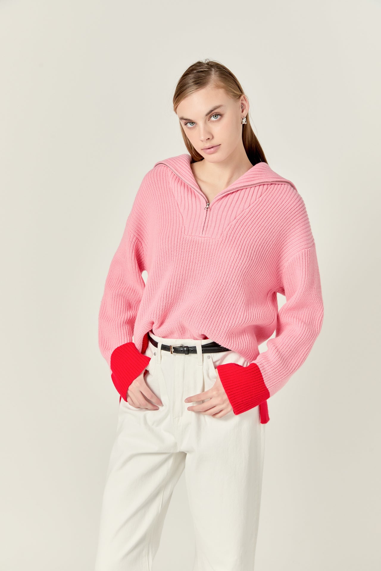 Contrast Zip Pullover Sweater
