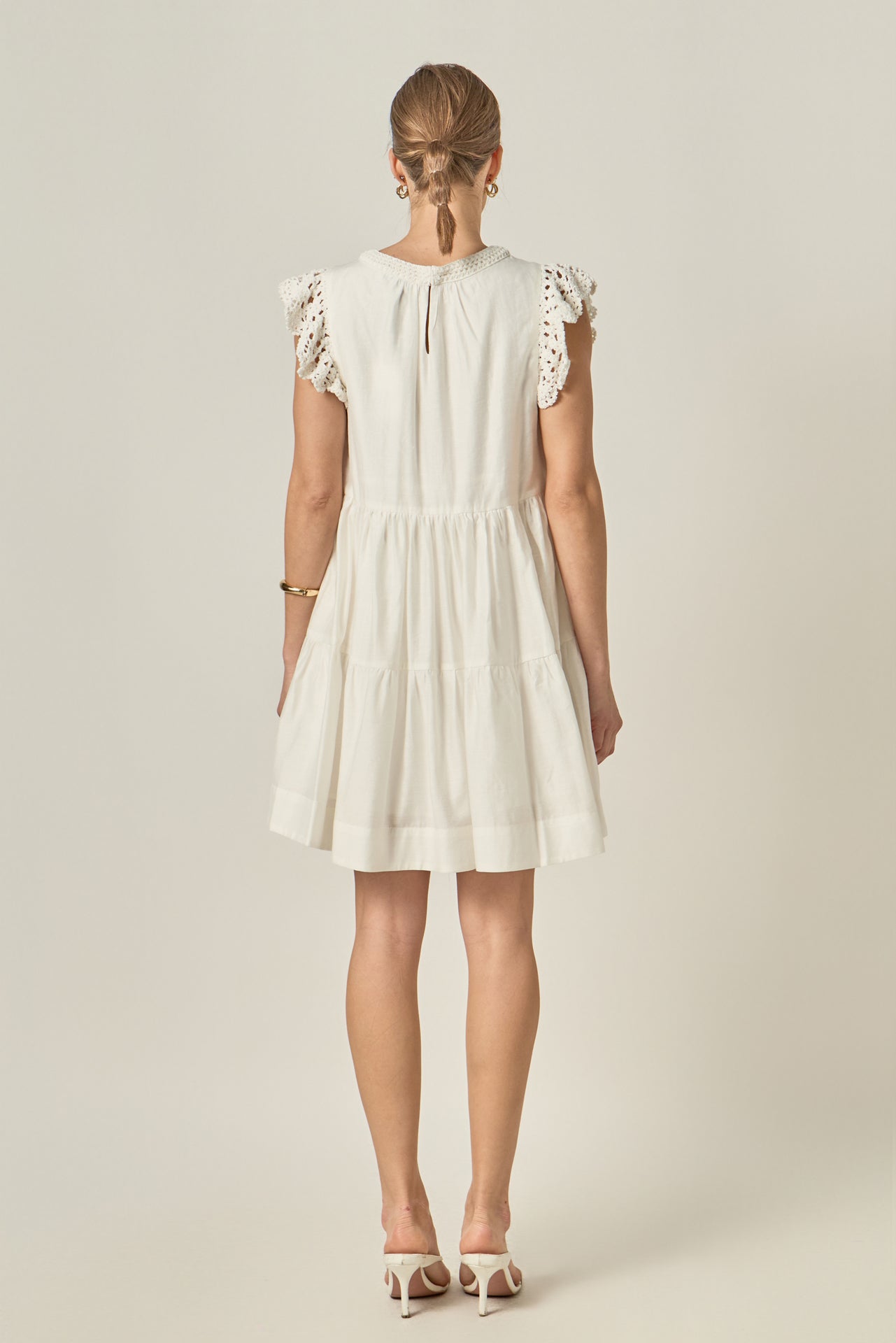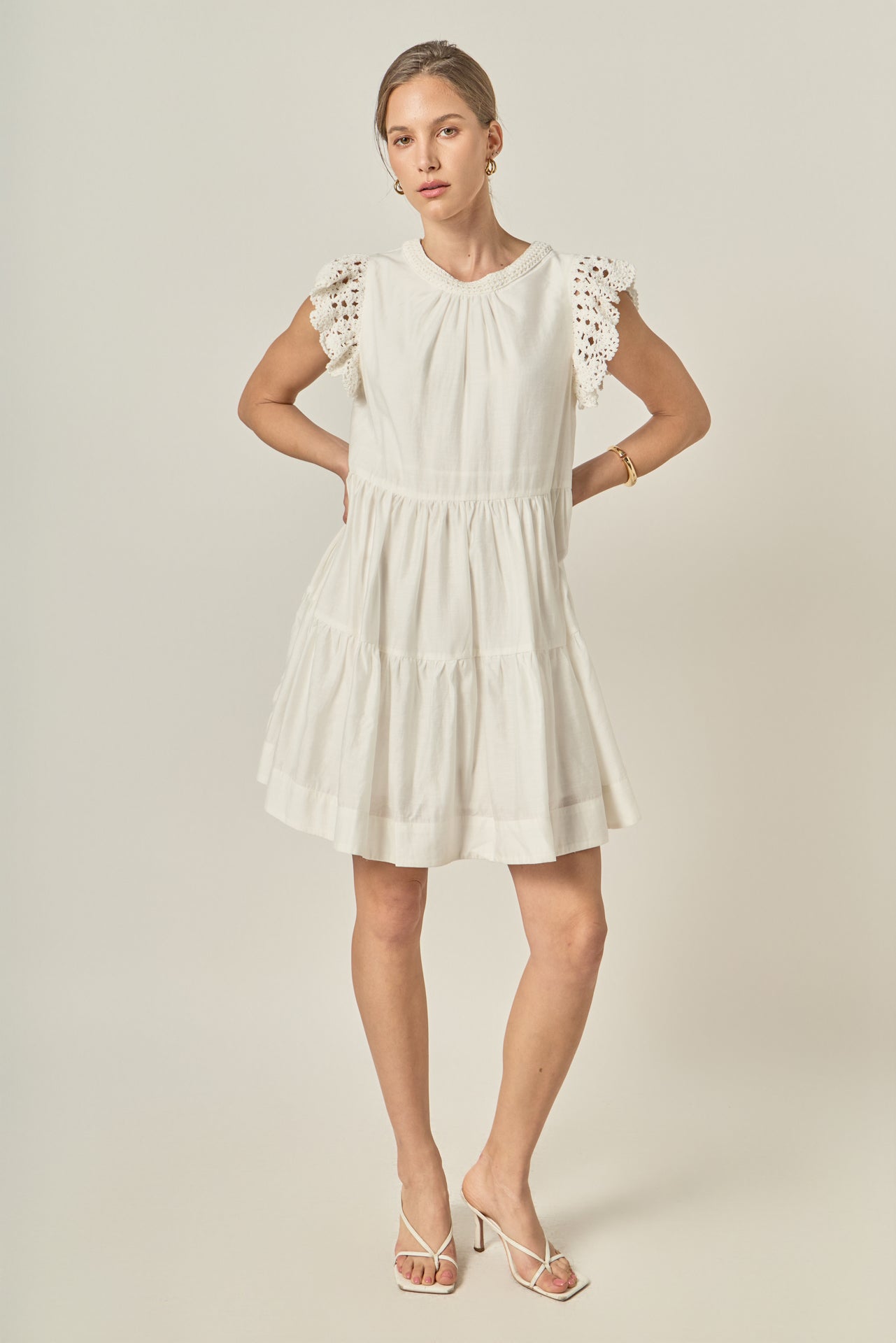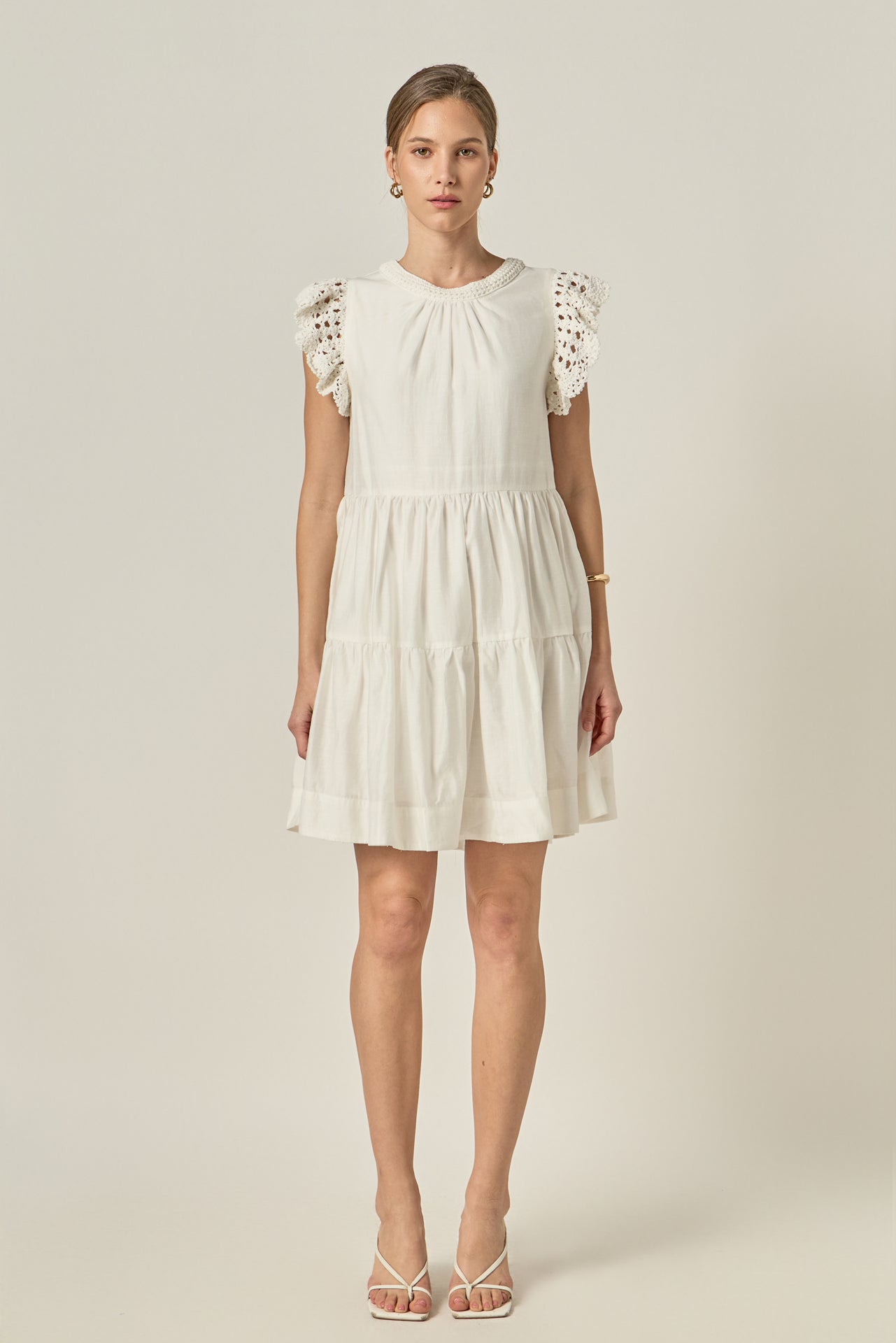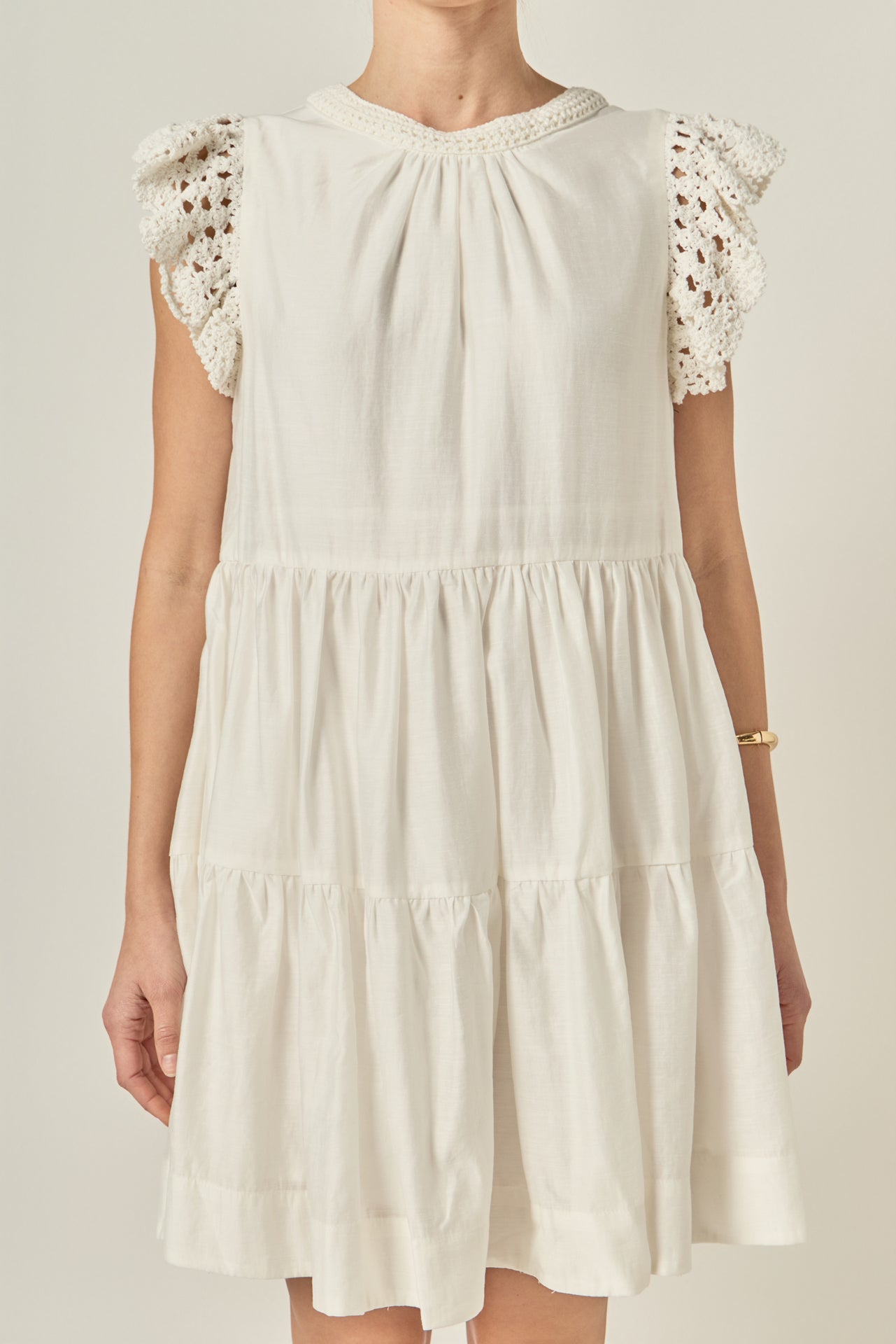 Romantic and effortlessly refined, The Clara Crochet Dress is your go-to for breezy elegance. Featuring delicate crochet trim along the flutter sleeves and a softly gathered neckline, this dress captures the charm of vintage-inspired femininity. The tiered silhouette offers gentle volume and graceful movement, while the high-quality fabric keeps it light and breathable for all-day comfort. Whether you're dressing up for a brunch, garden party, or weekend outing, Clara is the kind of piece that makes every moment feel a little more special. Slip it on and step into timeless beauty.
