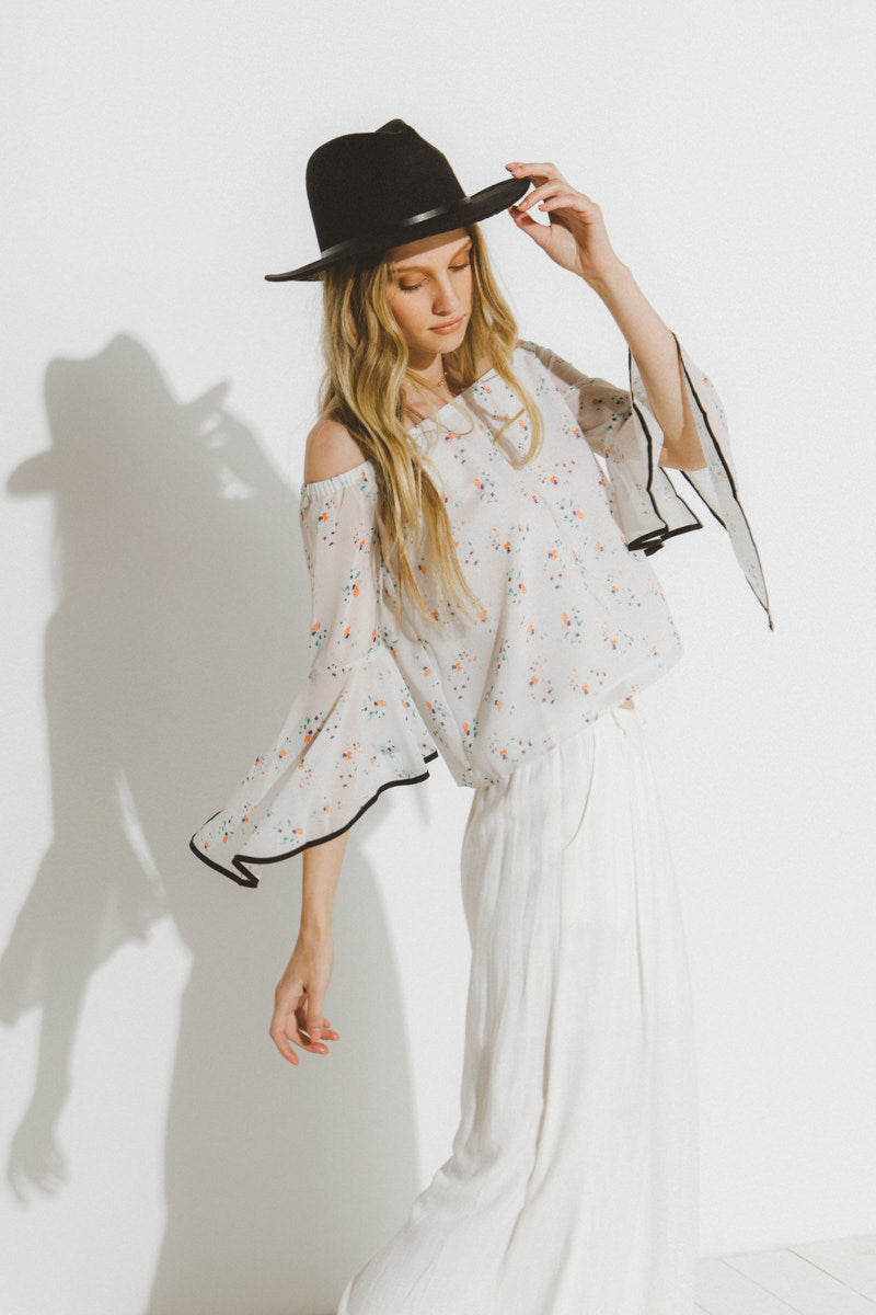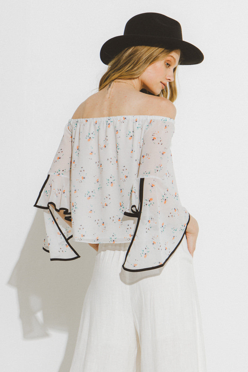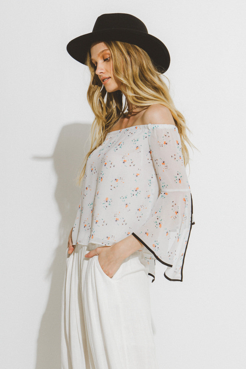 Look ultra-chic in our Daisy Sketch Printed Off The Shoulder Top! This must-have top is crafted from soft and lightweight fabric with stylish flare sleeve and contrast hem detail. The elegant floral print adds a feminine touch and its off-the-shoulder design creates an instantly glamorous look. Perfect for your next day out!