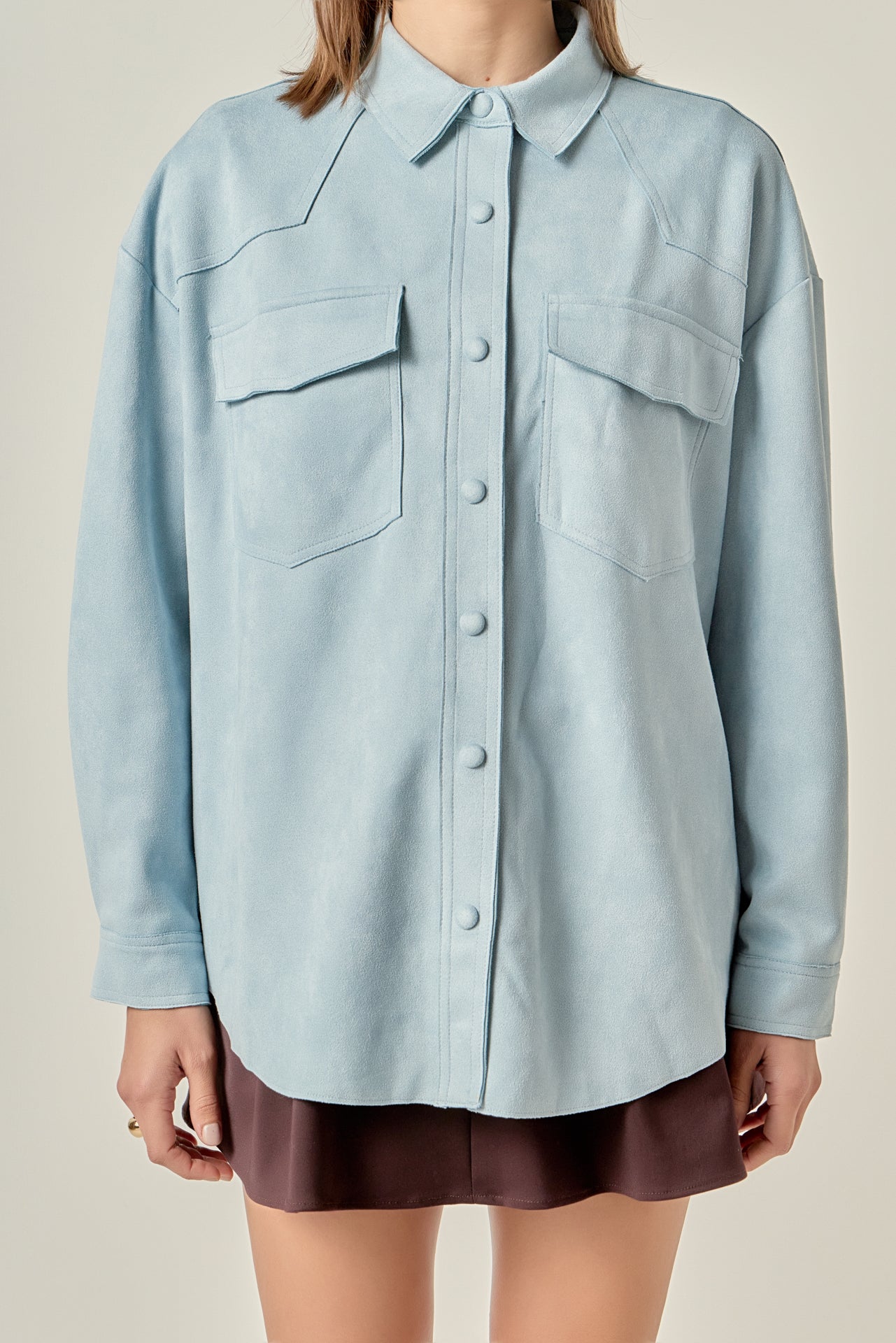 FREE THE ROSES-Faux Suede Oversized Shirts-SHIRTS & BLOUSES available at Objectrare