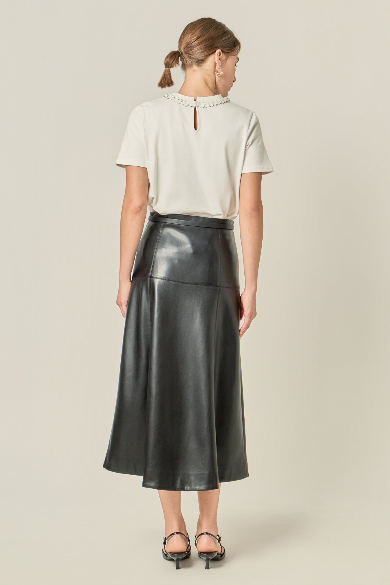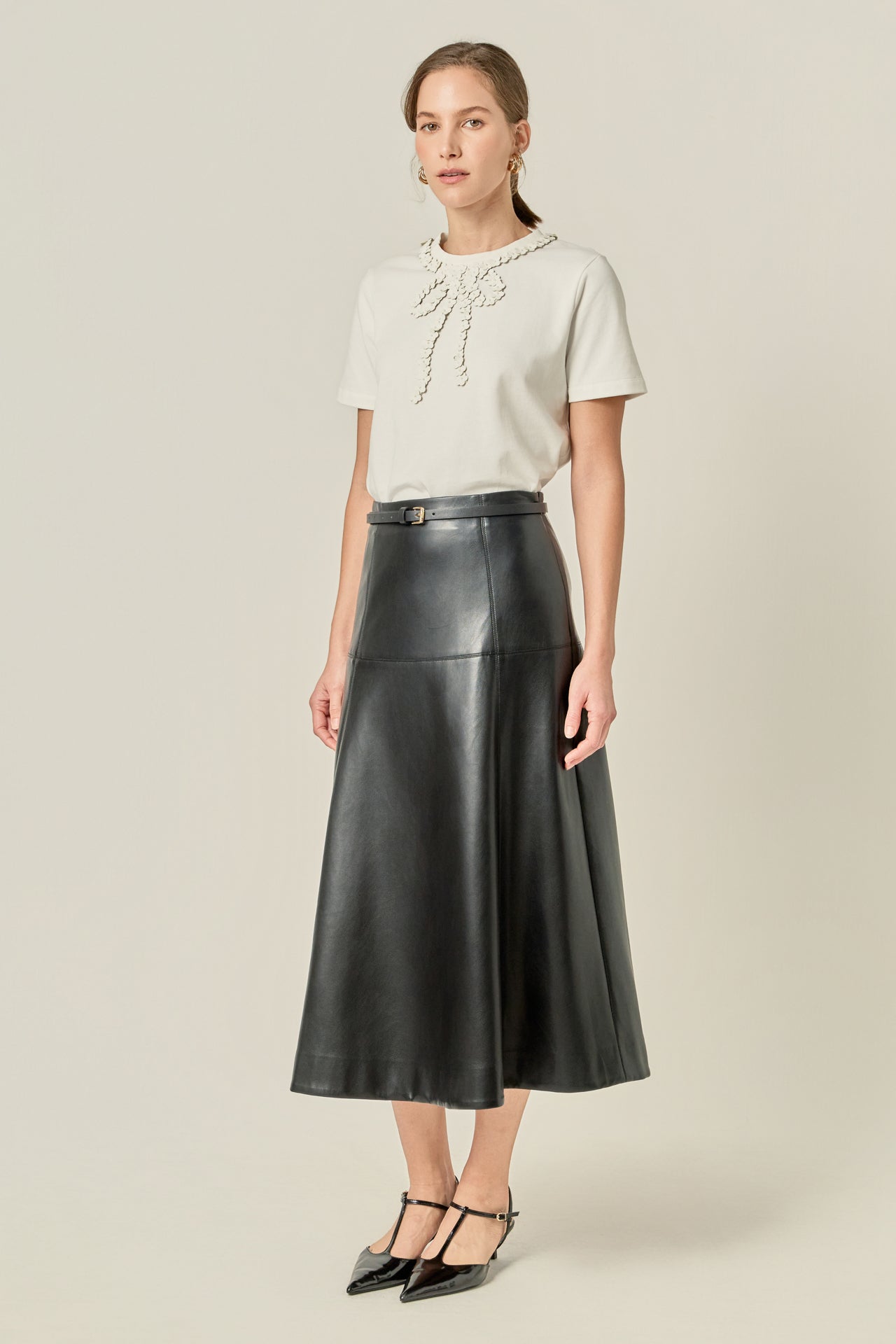 The Sequin Bow Detail Top combines classic simplicity with a hint of glamour. Designed with a round neckline and short sleeves, it features a statement sequin bow embellishment that adds dimension and shine to this sleek silhouette. Crafted from soft, structured fabric for all-day comfort, it’s the perfect piece to elevate both casual and dressy looks. Pair it with tailored pants or a leather skirt for a chic, polished ensemble that stands out with understated elegance.