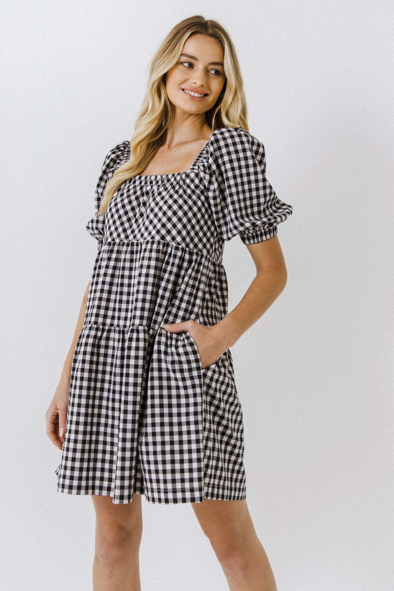Gingham Half Puff Sleeve Baby Dress- Sold Out
