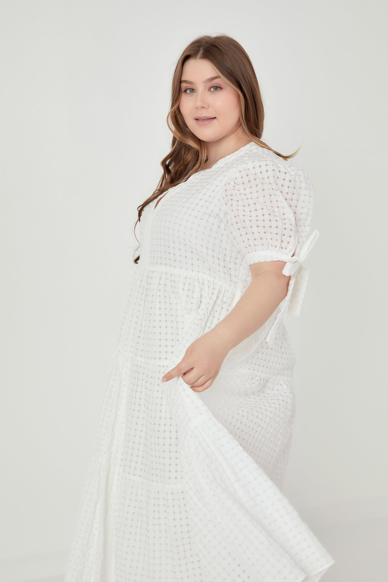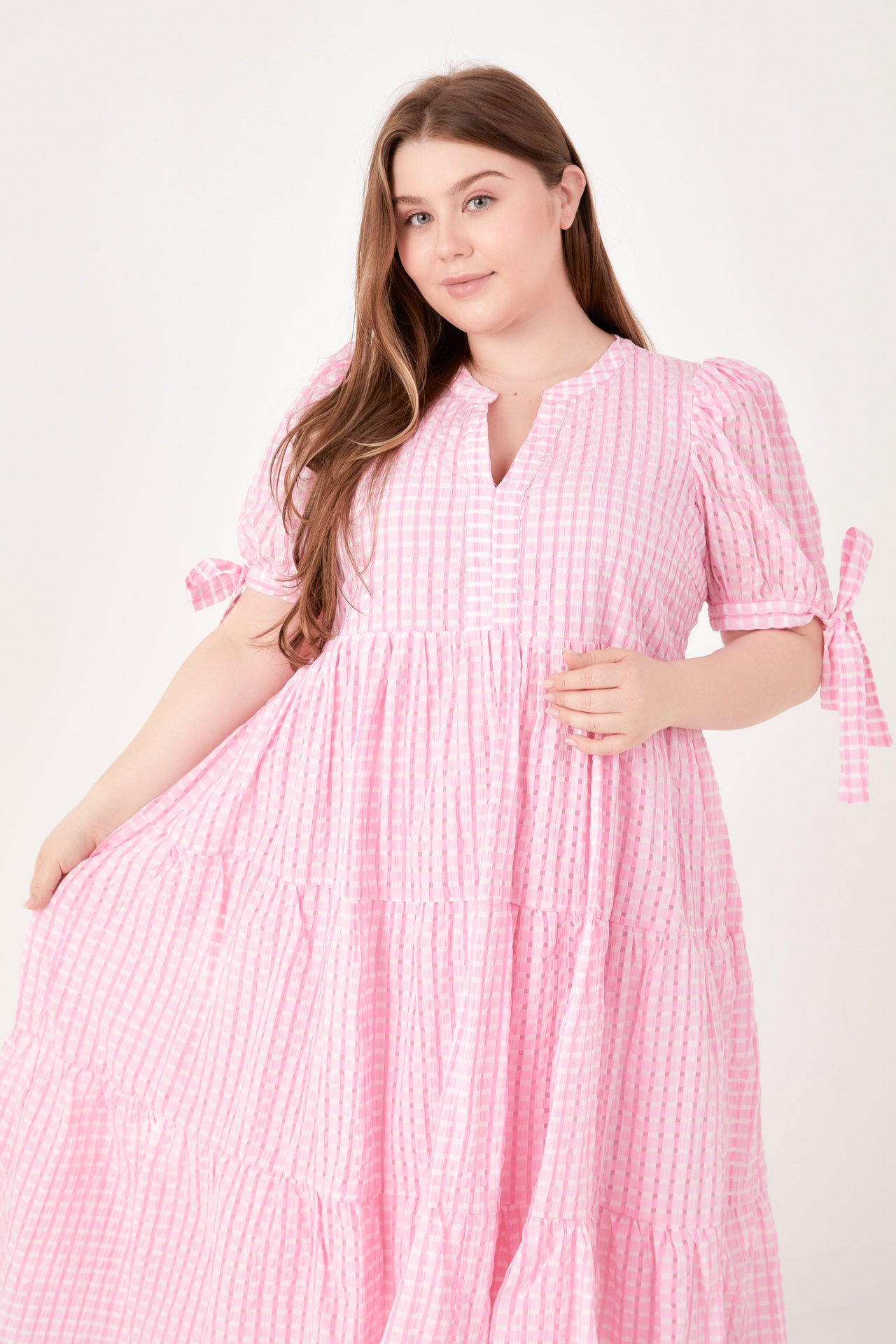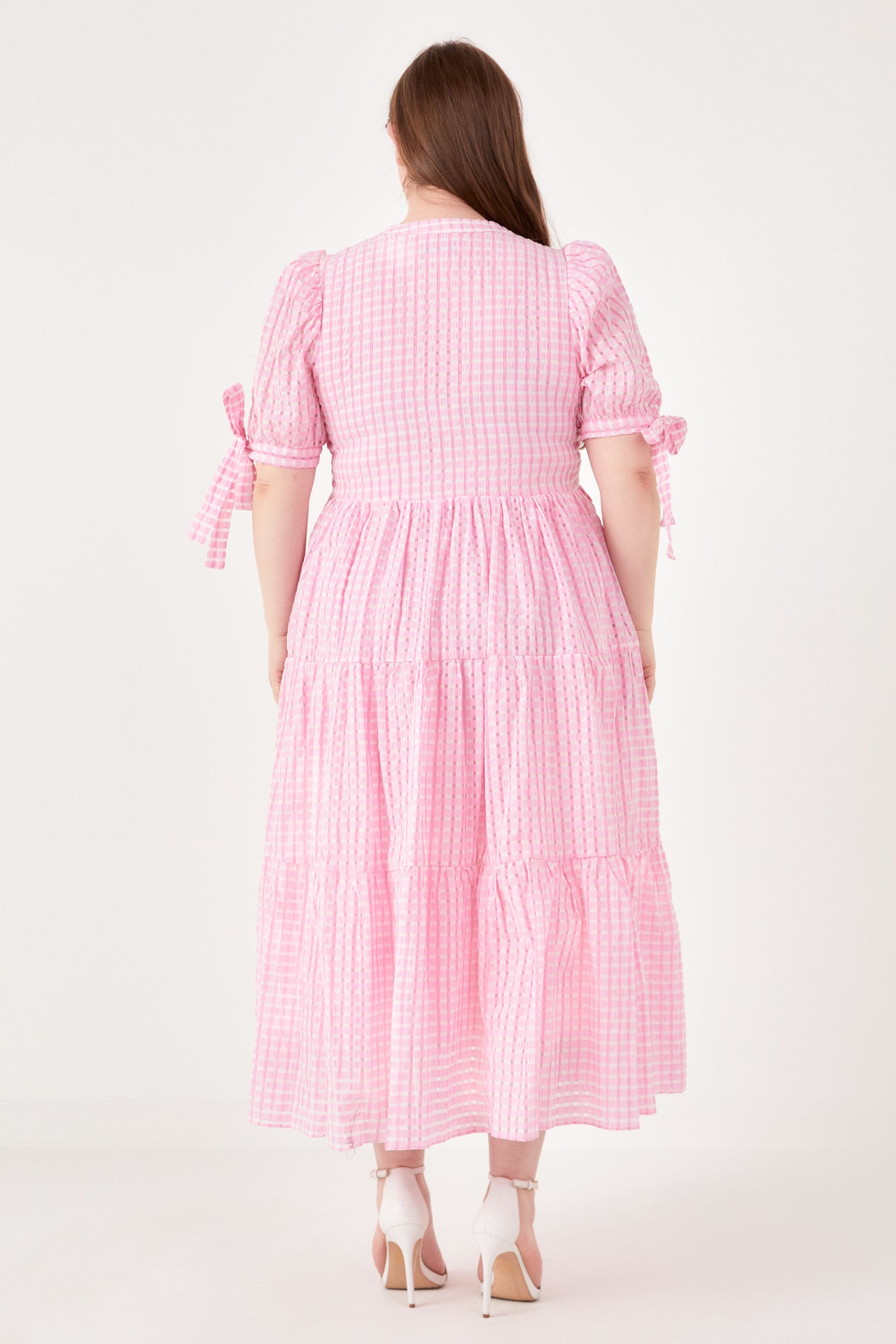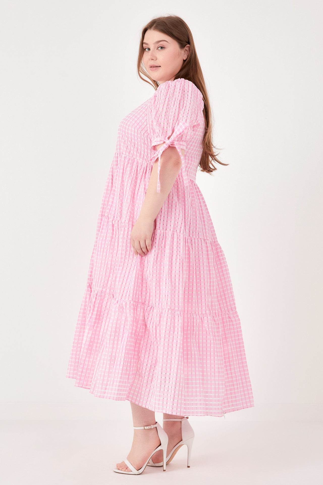 Gingham Tiered Midi Dress with Bow Tie Sleeves- Sold Out