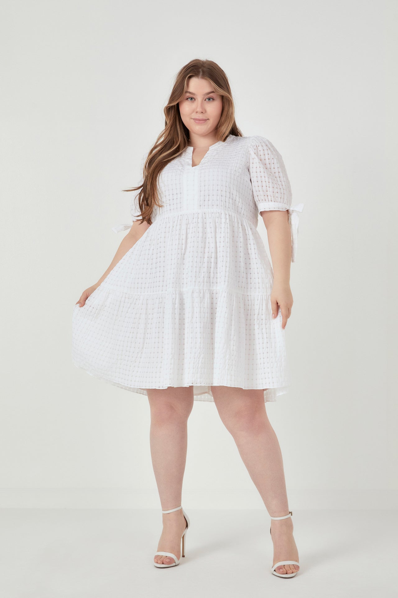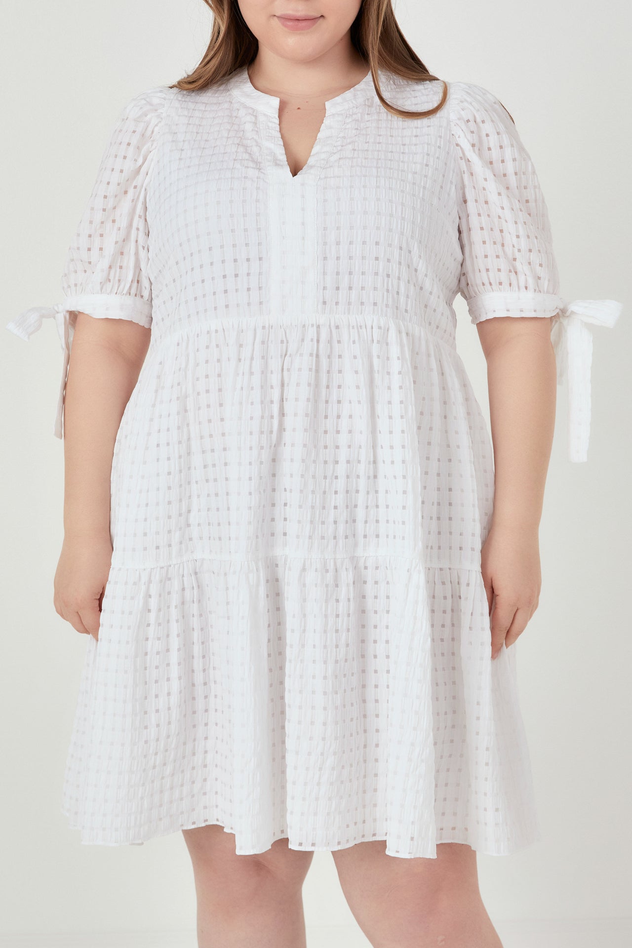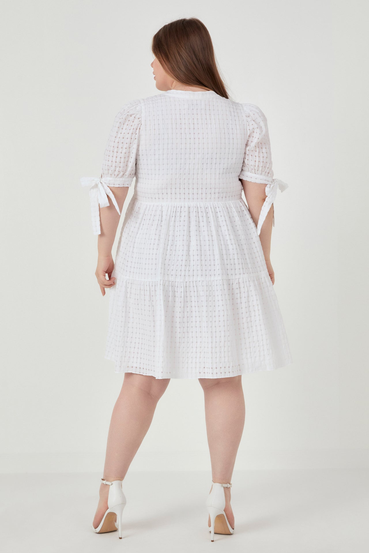 Summer is here and it's time to flaunt your style with something fresh and light. Introducing the Gingham Tiered Mini Dress from English factory is perfect for those days when you want to feel as fresh as a daisy. The dress has a loose fit and a tiered skirt with ribbon sleeve ties and puff half sleeves giving it an edgy yet feminine look. The added bonus of the V neck placket gives this dress an extra special touch. Embrace the summer vibes and show off your fresh new look!