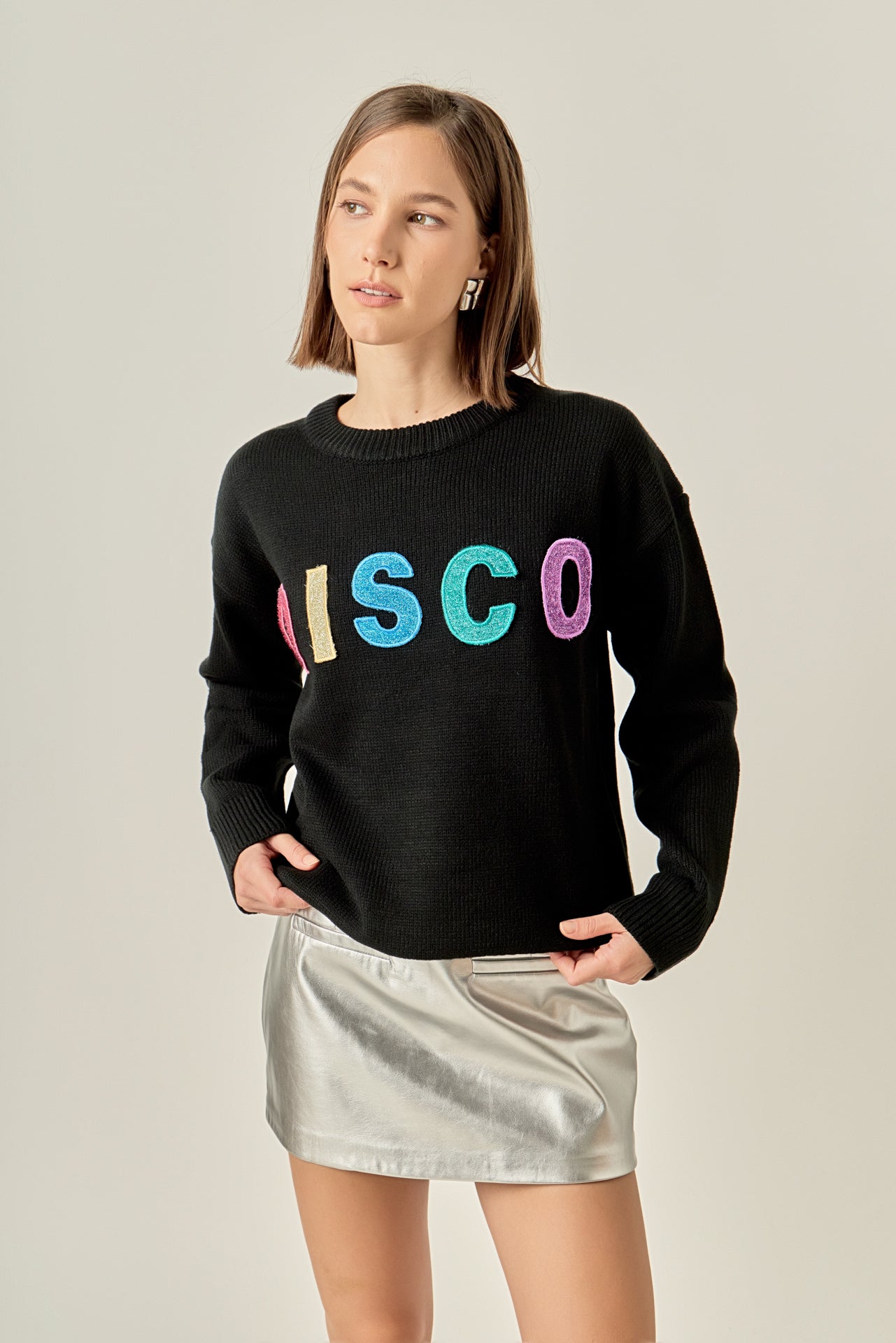 Disco Glitter Lettering Sweater