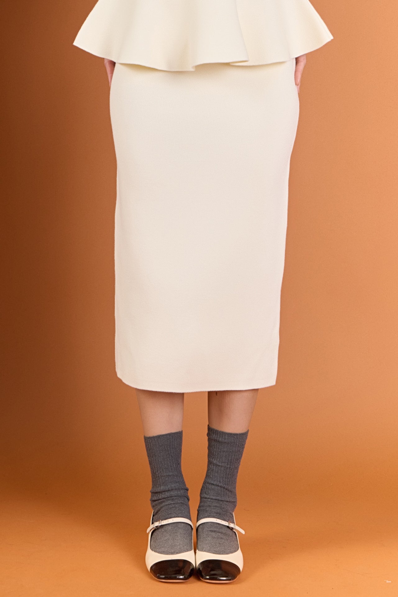 Step into timeless sophistication with our H-Line Knit Midi Skirt. Crafted from premium knit fabric, this skirt offers the perfect balance of structure and stretch, creating a sleek, flattering silhouette that moves with you. The clean H-line cut elongates the figure, while the versatile midi length makes it an effortless choice for both workdays and weekends. Style it with a crisp blouse and heels for a refined office look, or pair it with a tee and sneakers for a chic off-duty vibe. Comfortable, elegant, and endlessly versatile - this skirt is the ultimate wardrobe essential.