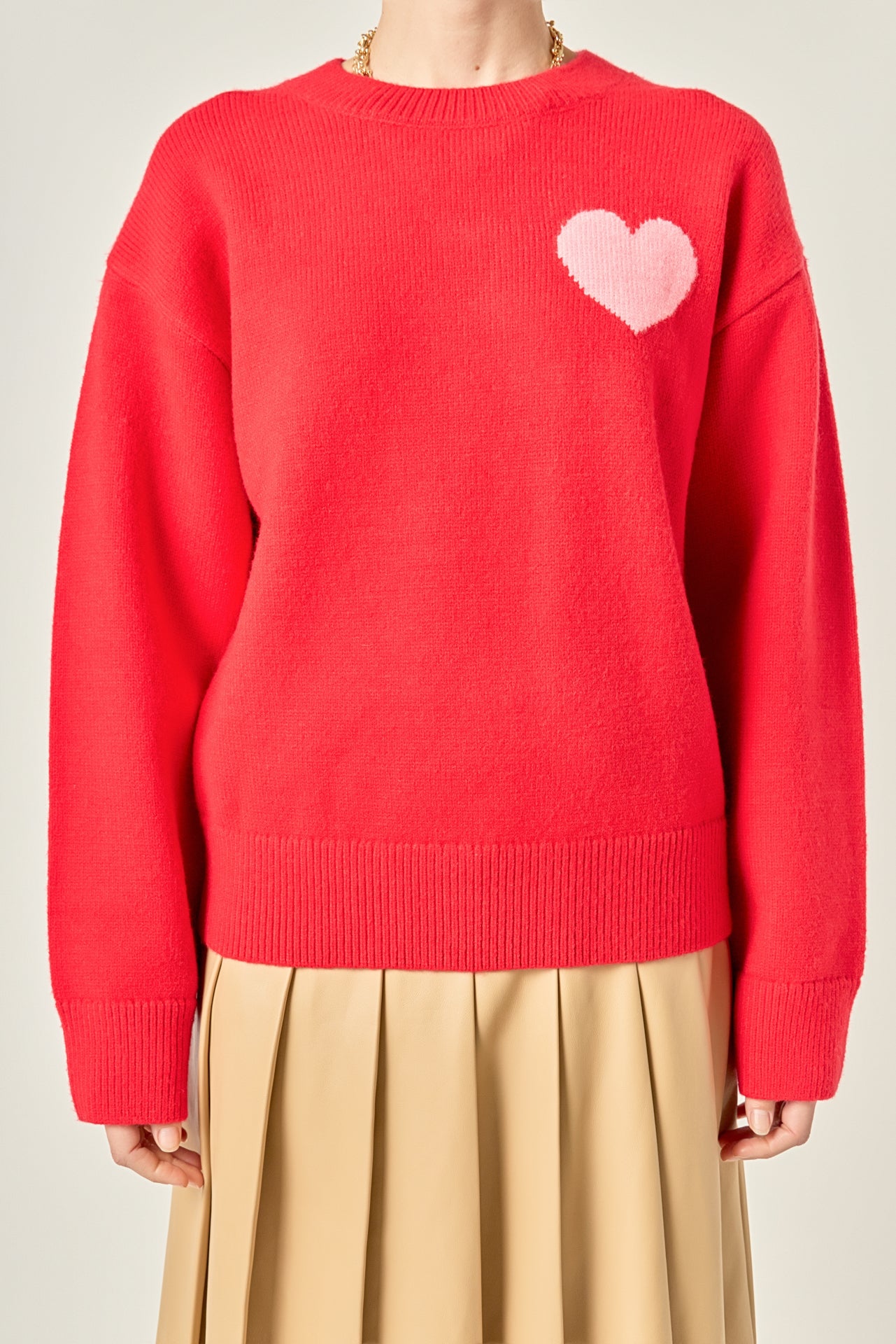 Cozy up in our Heart Sweater, made from a soft and comfortable knit fabric. The classic round neckline and long sleeves make it the perfect choice for chilly days. But what sets this sweater apart is the darling heart detail at the front, adding a sweet touch to your look. This versatile piece can be dressed up or down, making it a must-have for any fashionista's wardrobe. Whether you're curling up by the fire or heading out for a day of shopping, our Heart Sweater will keep you warm and stylish. Shop now for this season's must-have knit.