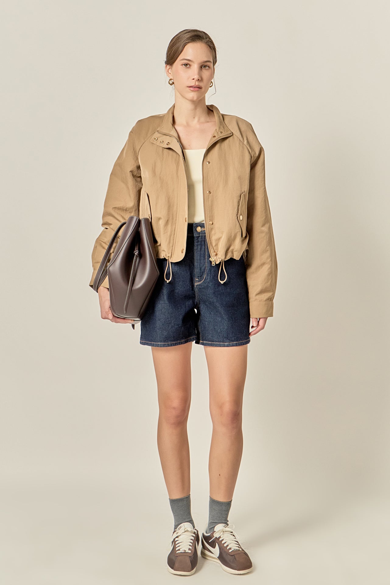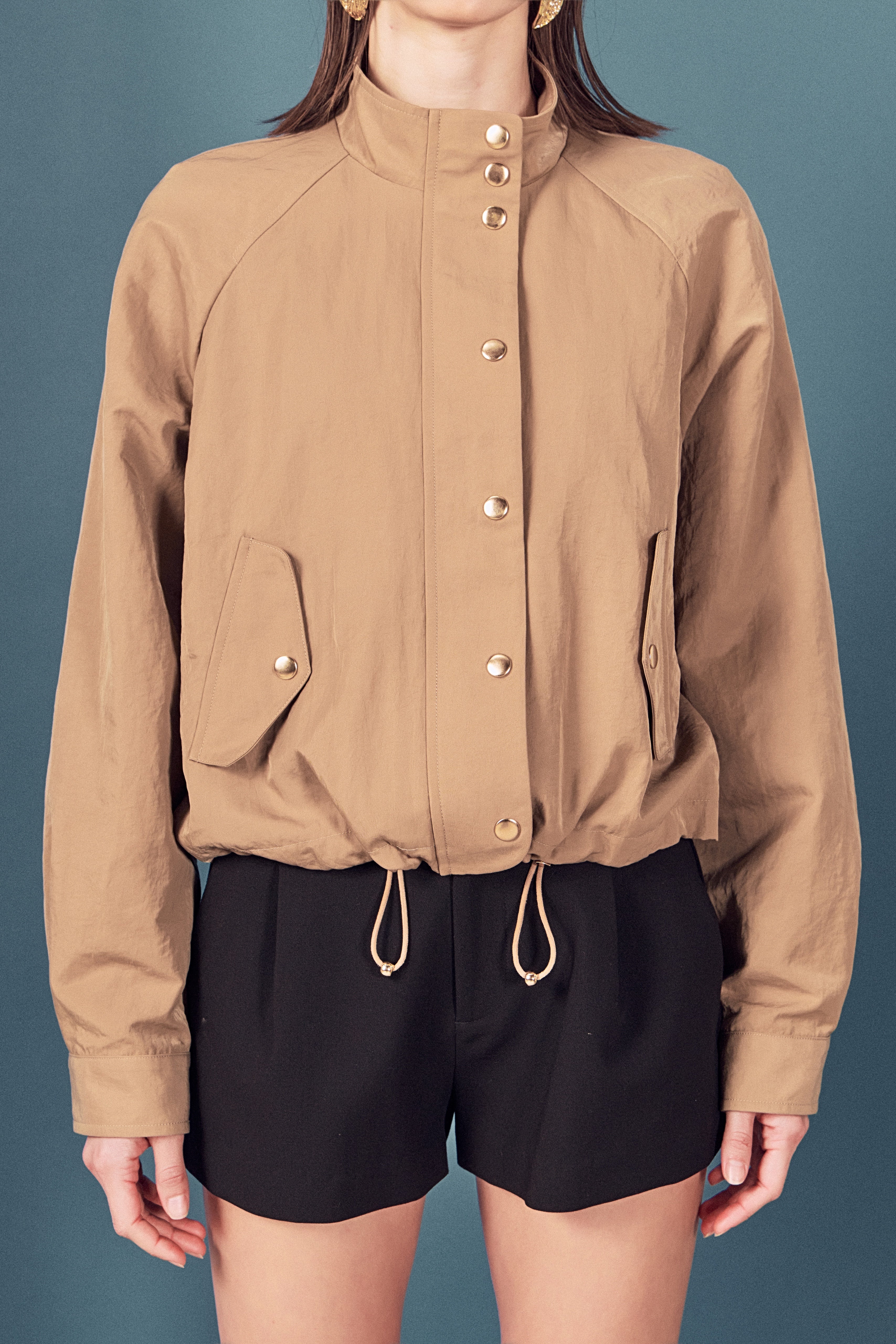 Meet your go-to outerwear essential: the Lightweight Snap-Front Bomber Jacket. Designed with clean lines and functional flair, this sleek jacket features a high stand collar, subtle gold-tone snap buttons, and a hidden zip closure for a streamlined finish. Crafted from lightweight, durable fabric, it's perfect for layering across seasons. Thoughtfully placed flap welt pockets keep your hands warm and essentials close. With its modern fit and casual-cool attitude, this versatile piece transitions effortlessly from weekdays to weekends.