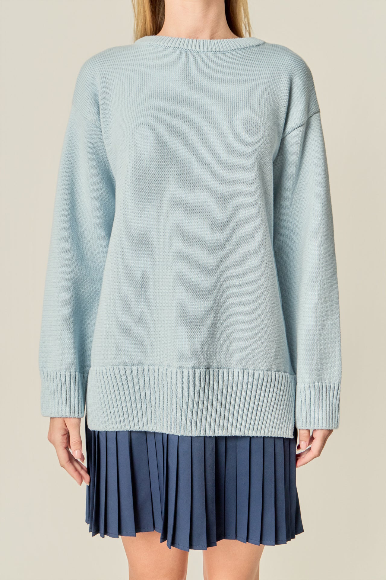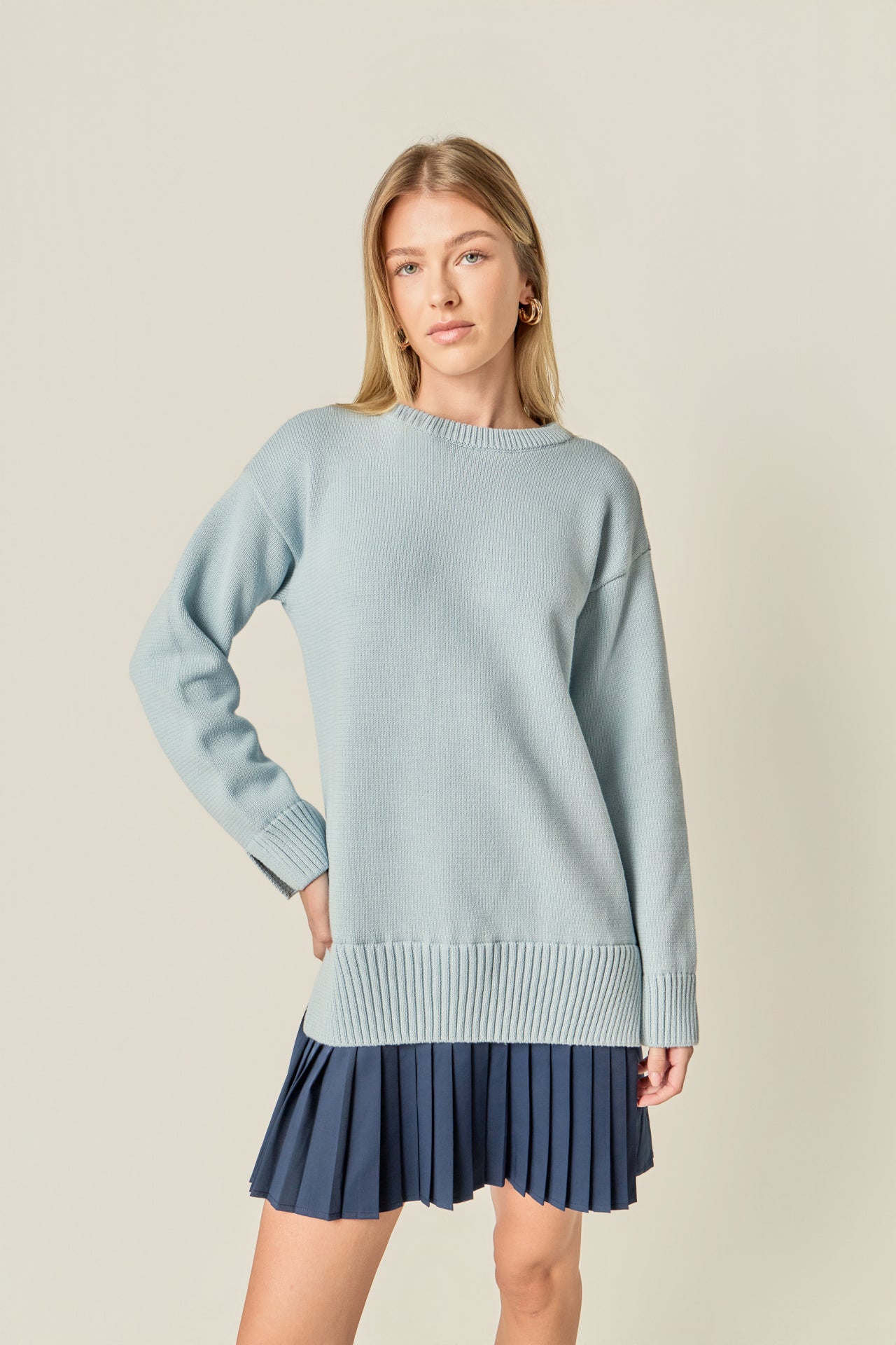 This mixed-media pleated mini dress offers the perfect balance of cozy and polished. The sweater-style top keeps it comfortable, while the pleated skirt adds movement and a bit of edge. The relaxed fit and drop shoulders keep the look modern and effortless, making it a simple go-to for day or night.