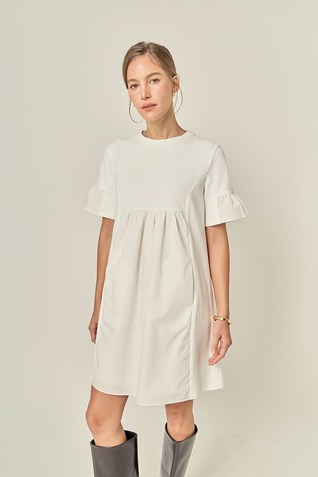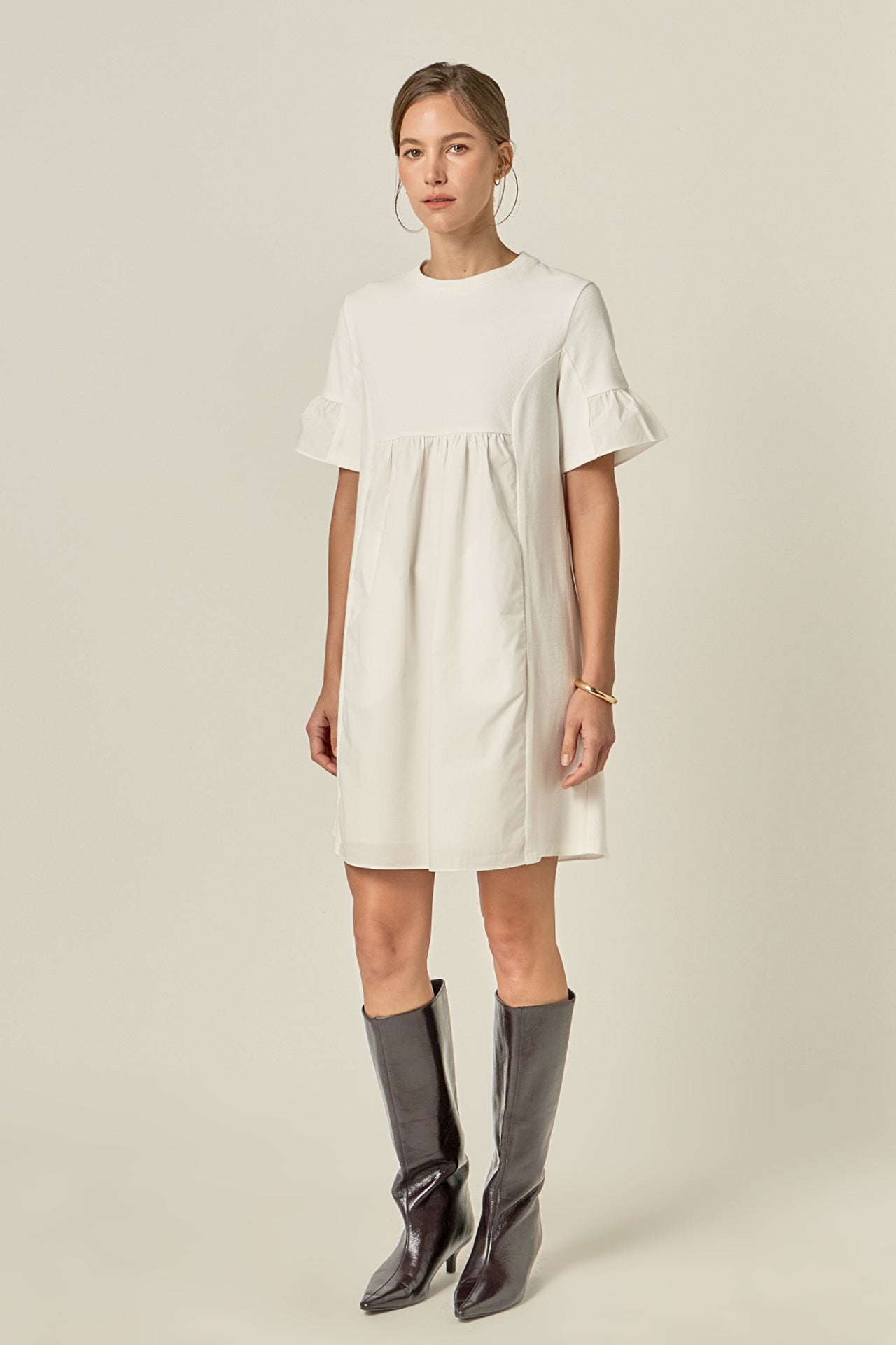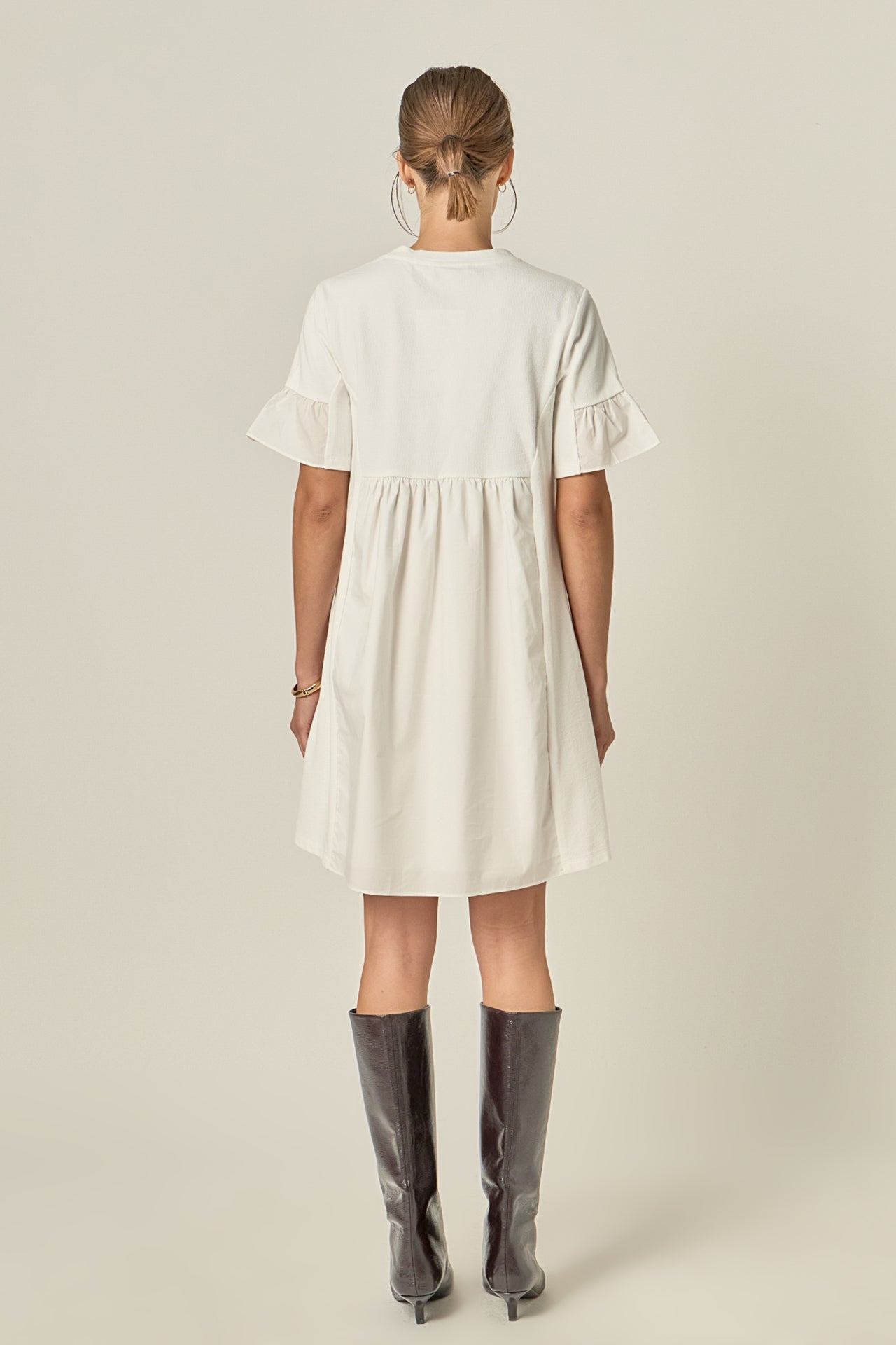 Mixed Media Ruffled Short-Sleeve Mini Dress