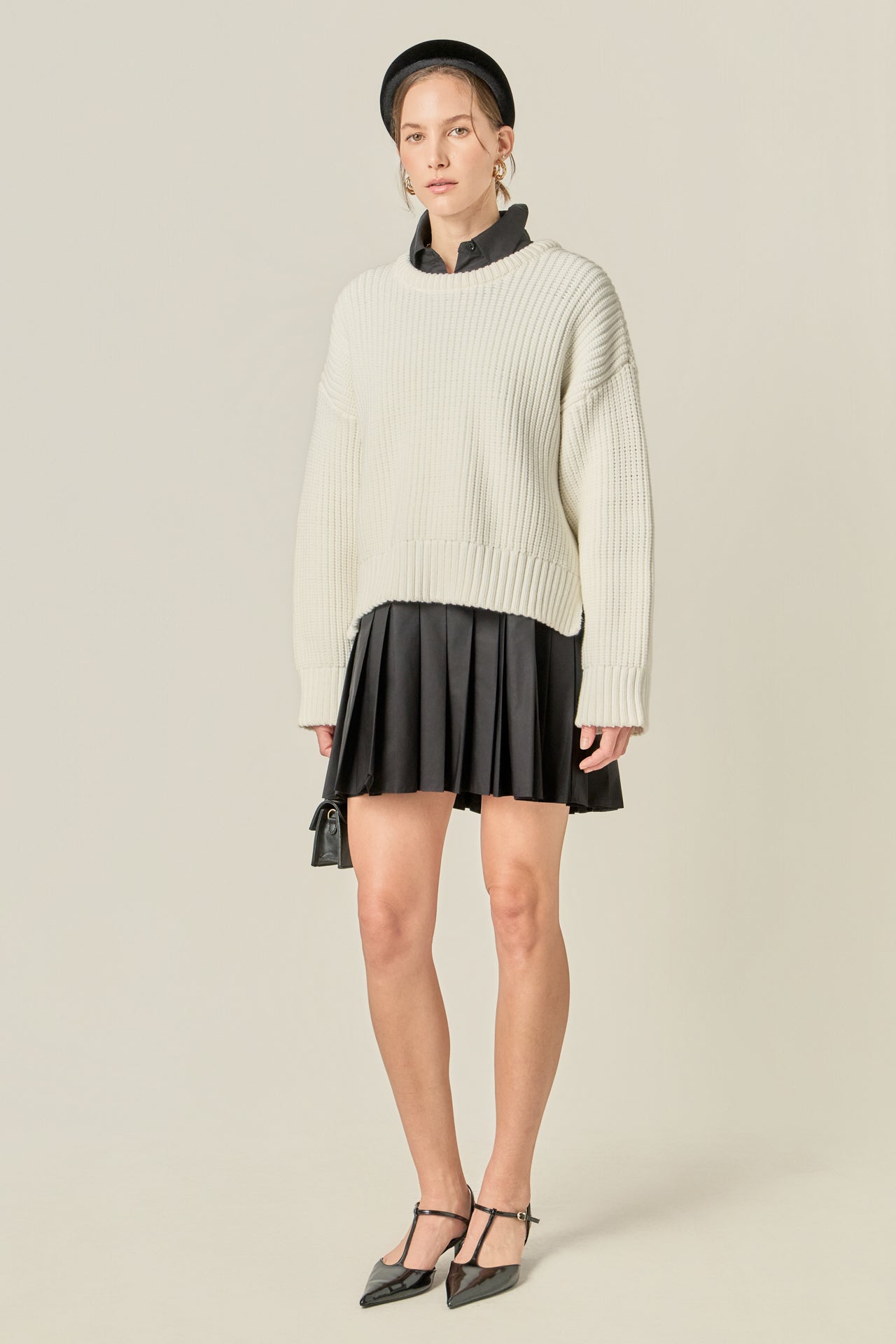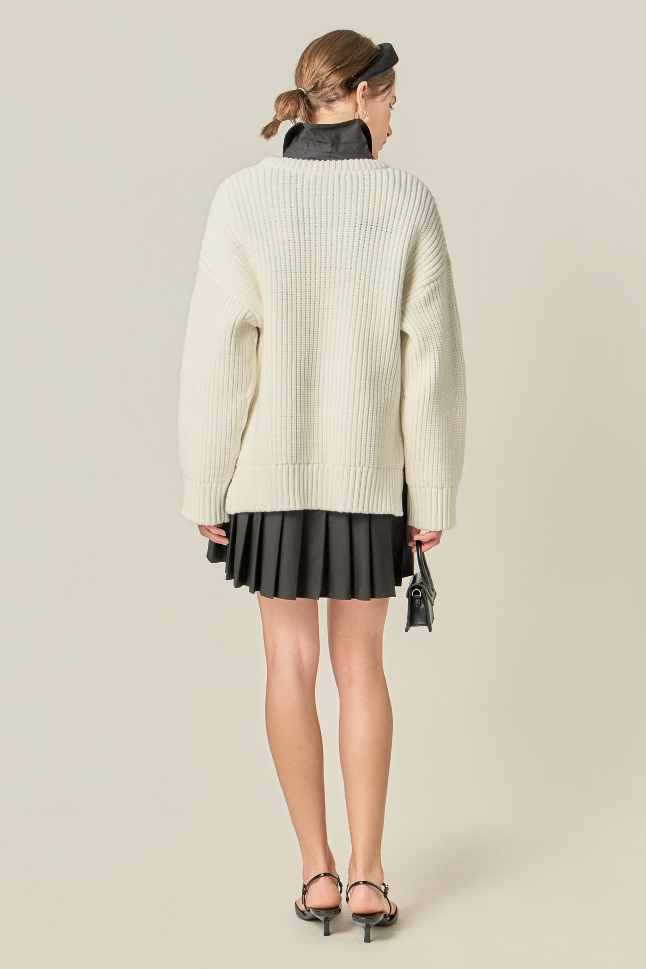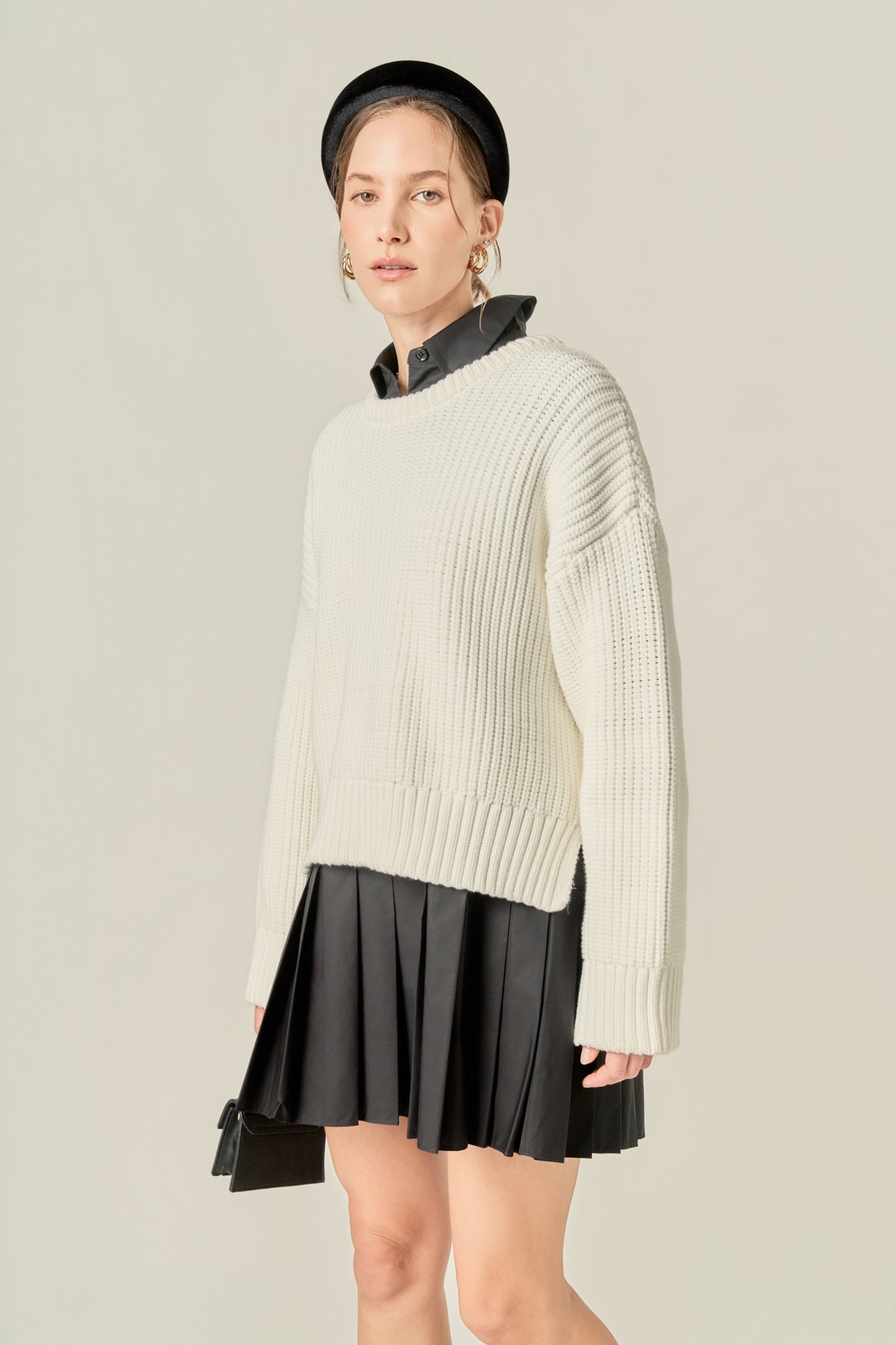 Effortless comfort meets timeless style. The Oversize Ribbed Sweater features a relaxed silhouette with a round neckline and long sleeves, offering the perfect blend of coziness and sophistication. Crafted from a chunky ribbed knit, it delivers texture and warmth while maintaining a refined, minimalist aesthetic. Ideal for layering or wearing on its own, this versatile piece transitions seamlessly from casual days to elevated evenings.