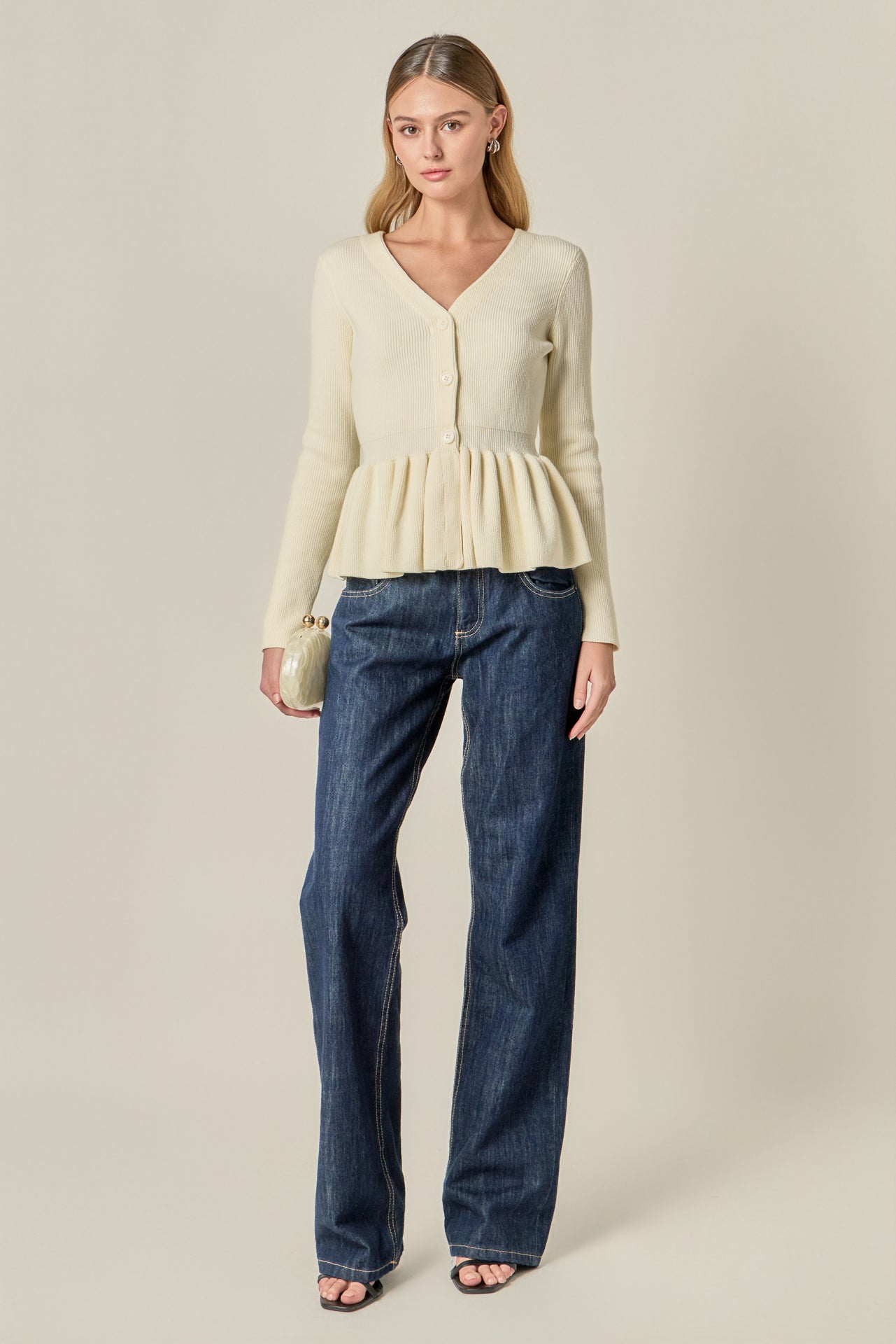 Upgrade your wardrobe with our Peplum Knit Long Sleeve Vest, crafted from a soft, comfortable knit that offers both stretch and structure. Designed with a flattering peplum silhouette, it cinches at the waist to enhance your shape while providing an effortlessly feminine look. The long sleeves make it perfect for layering or wearing on its own from day to night. Versatile and easy to style, this must-have piece transitions seamlessly from casual outings to polished occasions.