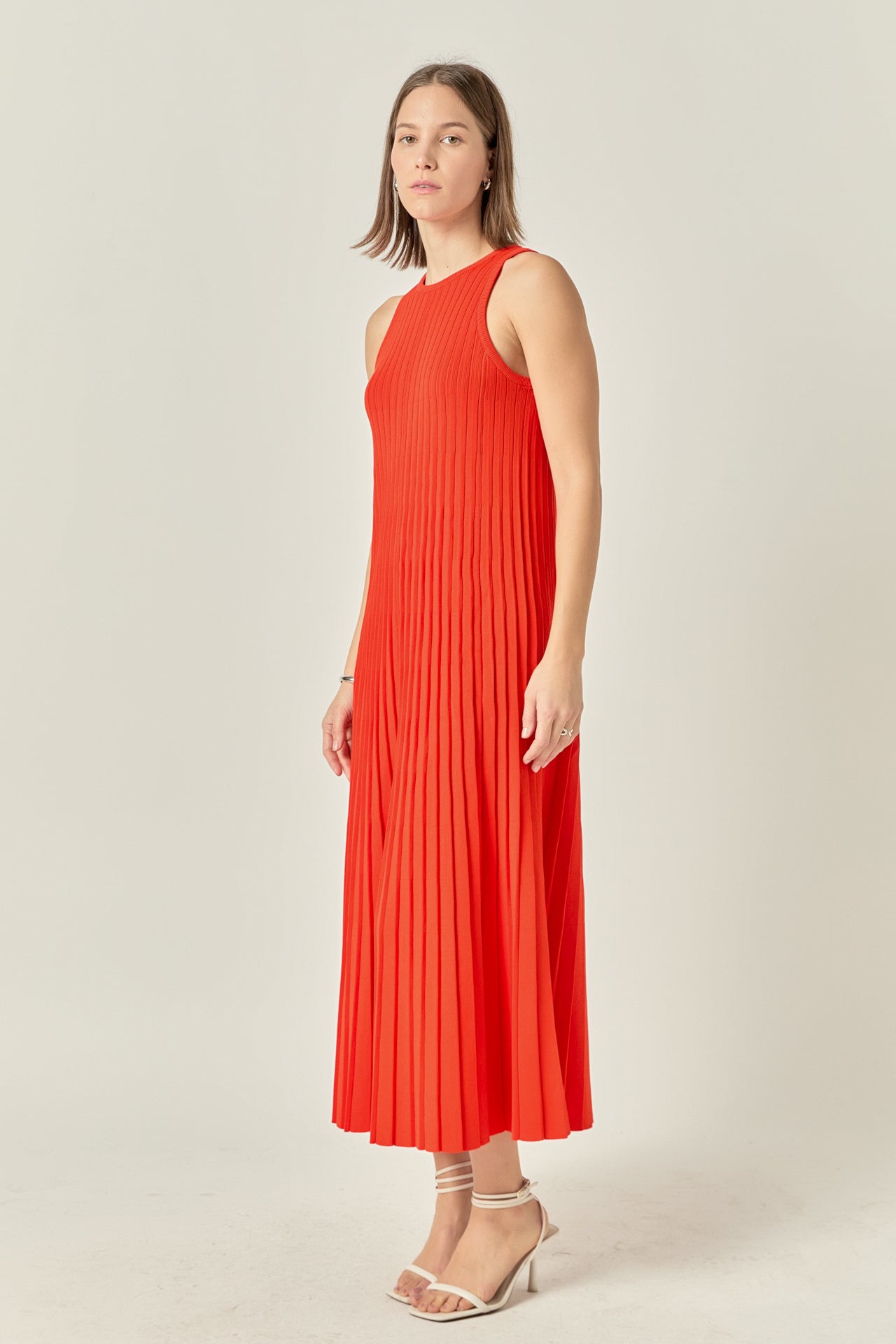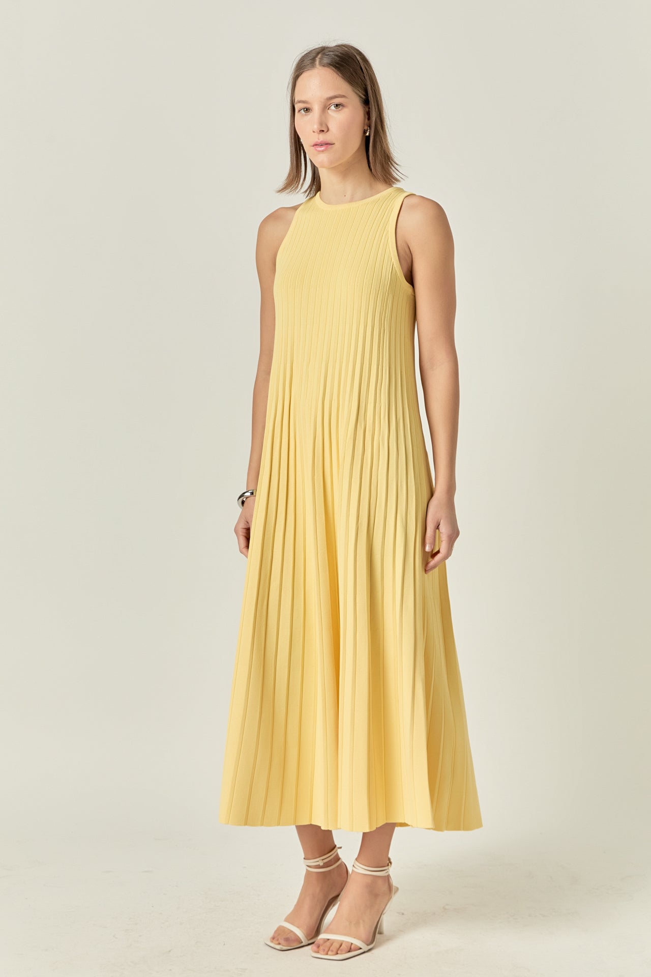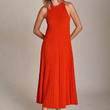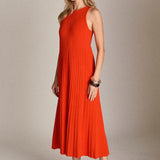Elevate your wardrobe with our stunning Pleated A-line Knit Midi Dress. Boasting a timeless round neckline and delicate pleats this sleeveless dress is a must-have for any occasion. The midi length adds a touch of sophistication making it perfect for both day and night. With its flattering A-line silhouette this dress is designed to showcase your curves in all the right places. Perfect for any season this dress will become your new go-to. Shop now and experience the ultimate blend of fashion and function!