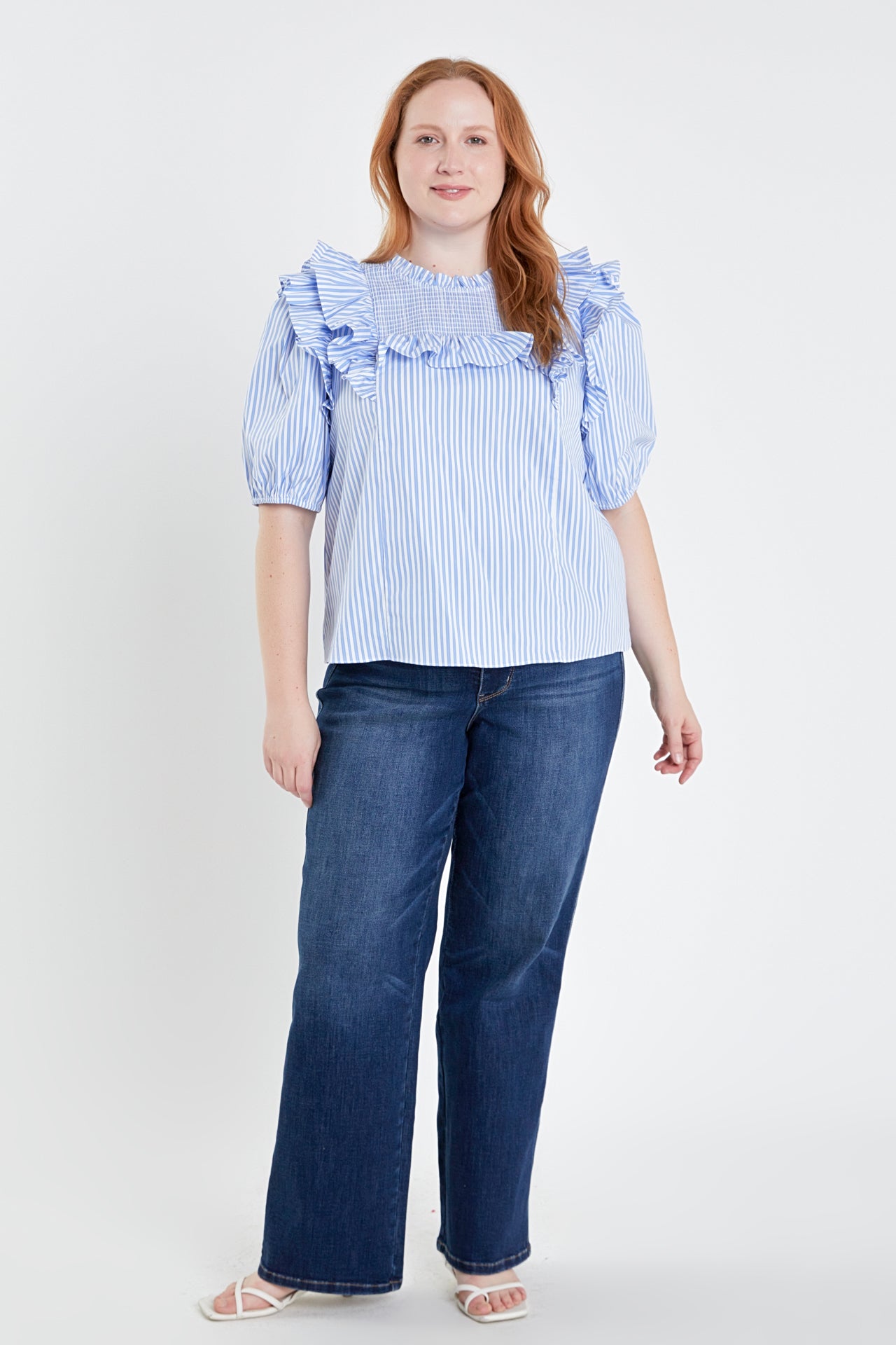 Our Smocked Top is the perfect blend of style and comfort. Designed with a round neckline and ruffle details this top exudes a feminine charm. The puffy short sleeves with elastic add a touch of playfulness to the overall look. The smocked yoke adds texture and dimension to the top making it stand out from the rest. This top is perfect for any occasion and can be easily dressed up or down. Made with high-quality materials it guarantees durability and comfort. This top is a must-have in your wardrobe. Shop now and elevate your everyday look!