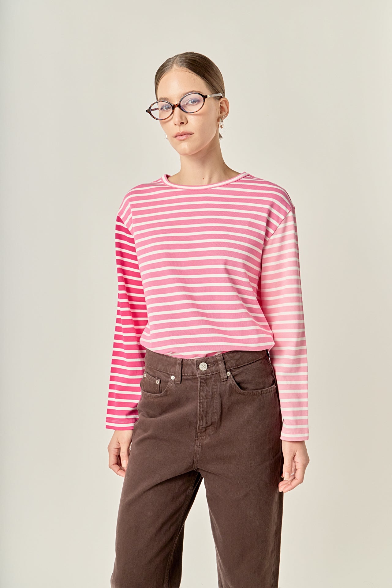 Brighten up your casual rotation with our Stripe Colorblock Long Sleeve Tee. Featuring a playful mix of pink hues in bold horizontal stripes, this relaxed-fit top adds a fun, youthful twist to everyday dressing. Made from soft, breathable cotton, it offers all-day comfort and a laid-back silhouette. The classic crew neckline and long sleeves make it perfect for layering or wearing solo on breezy days. Pair it with denim shorts for a sunny day look or with jeans for an effortlessly cute outfit.