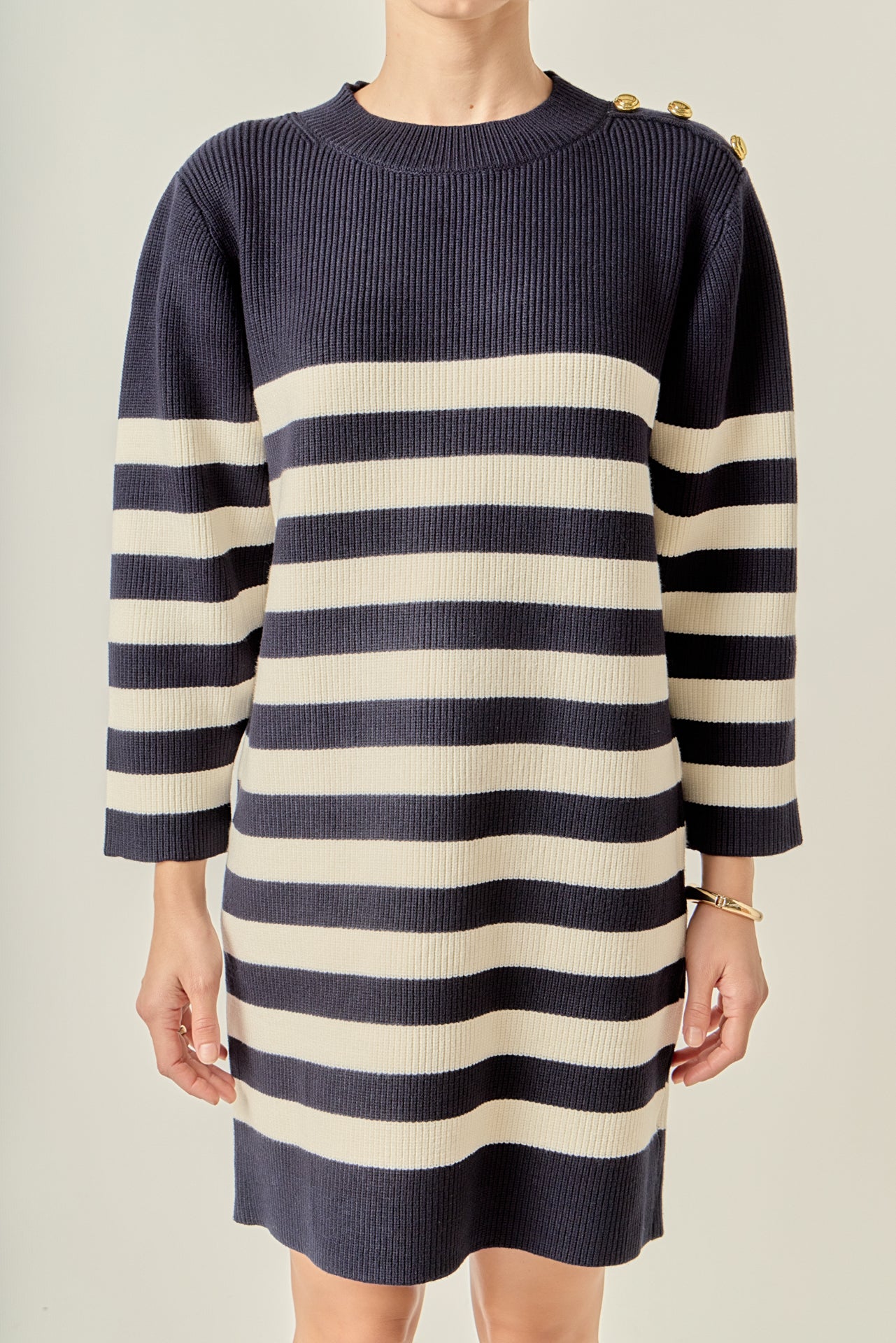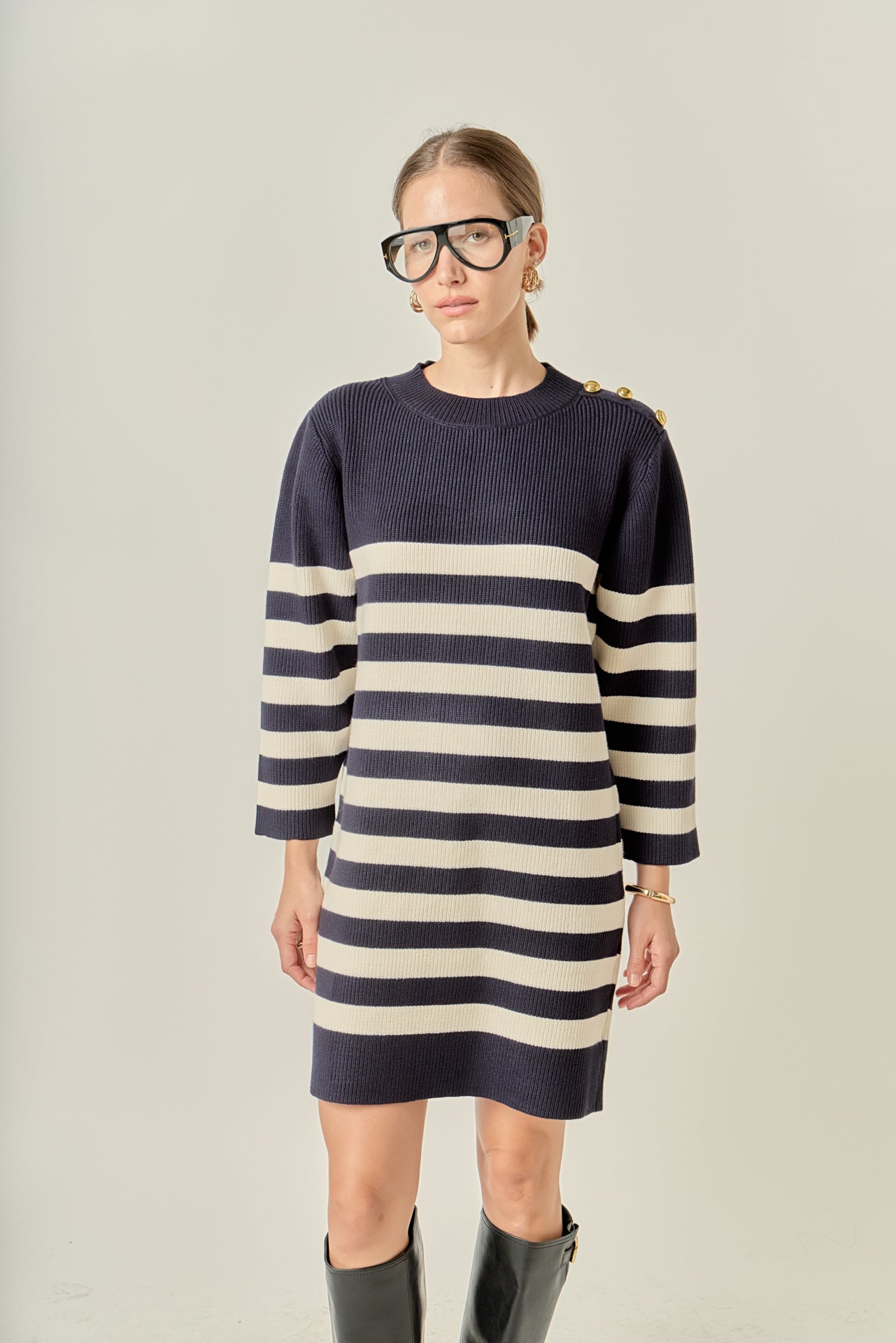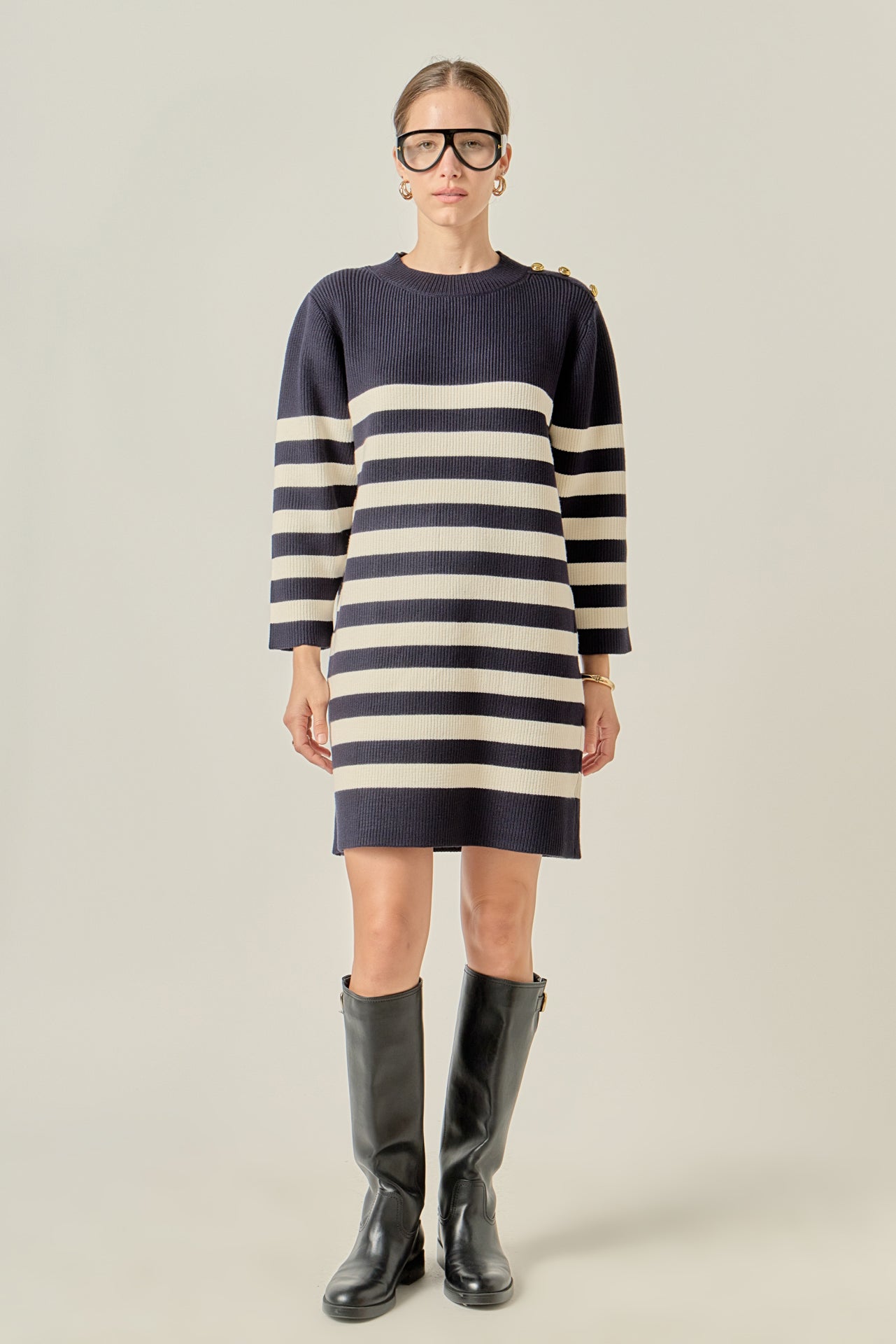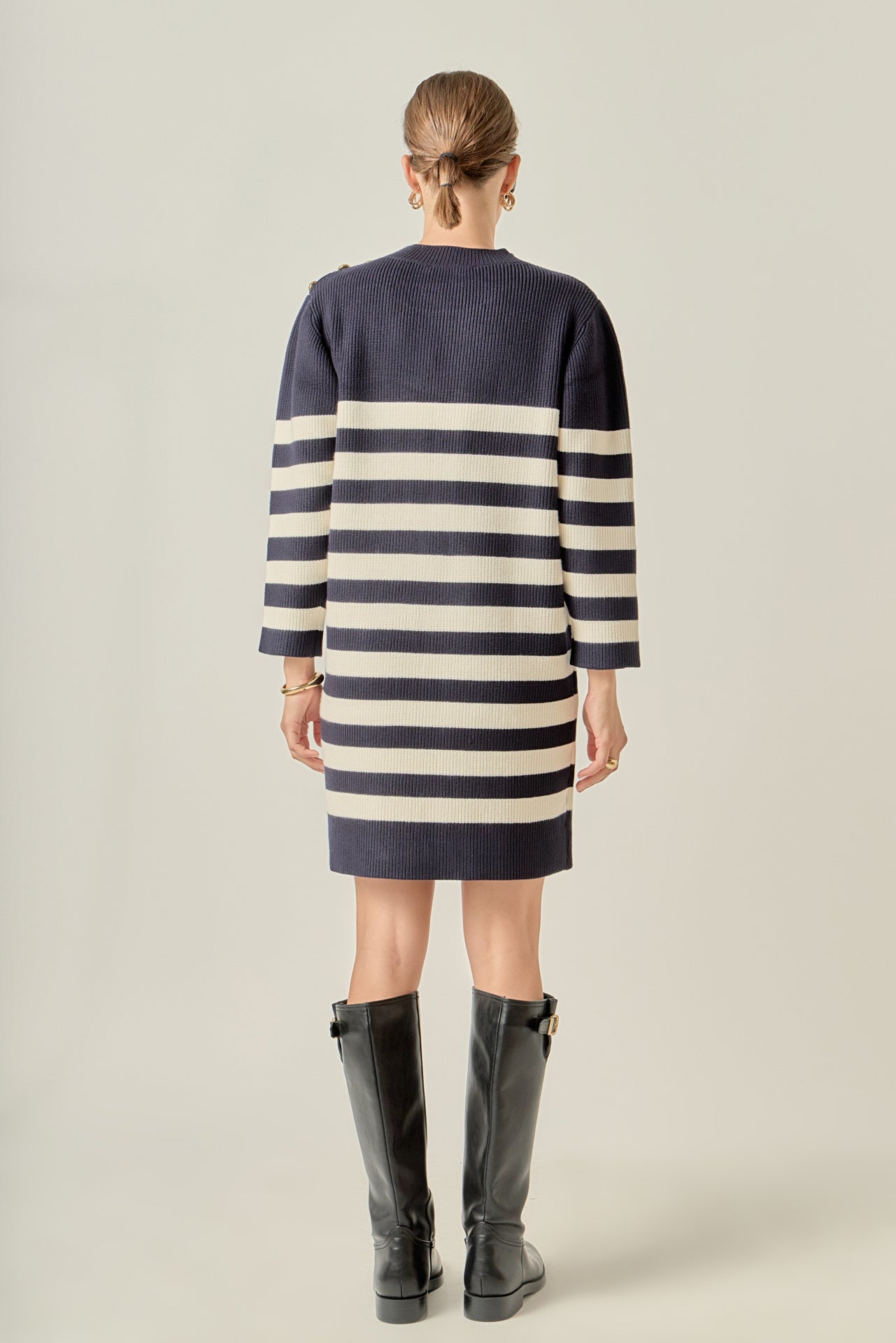 Stay cozy and stylish with our Stripe Knit Dress! Made with a soft and furry textured knit fabric this dress is perfect for chilly weather. The round neckline and long sleeves add a touch of elegance while the drop shoulder design provides a relaxed and comfortable fit. Effortlessly transition from day to night with this versatile dress. Perfect for pairing with boots and a jacket or dressing up with heels.