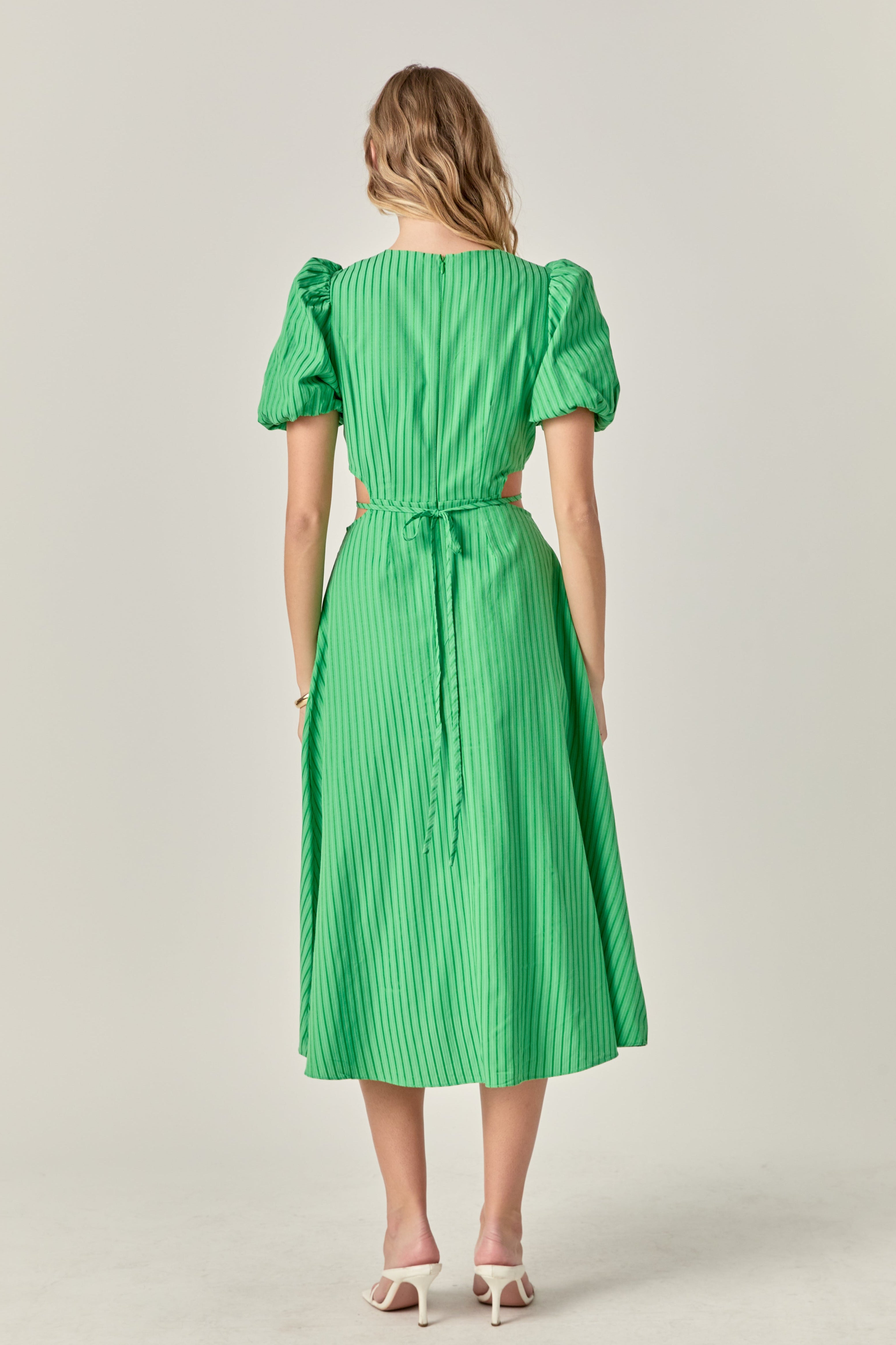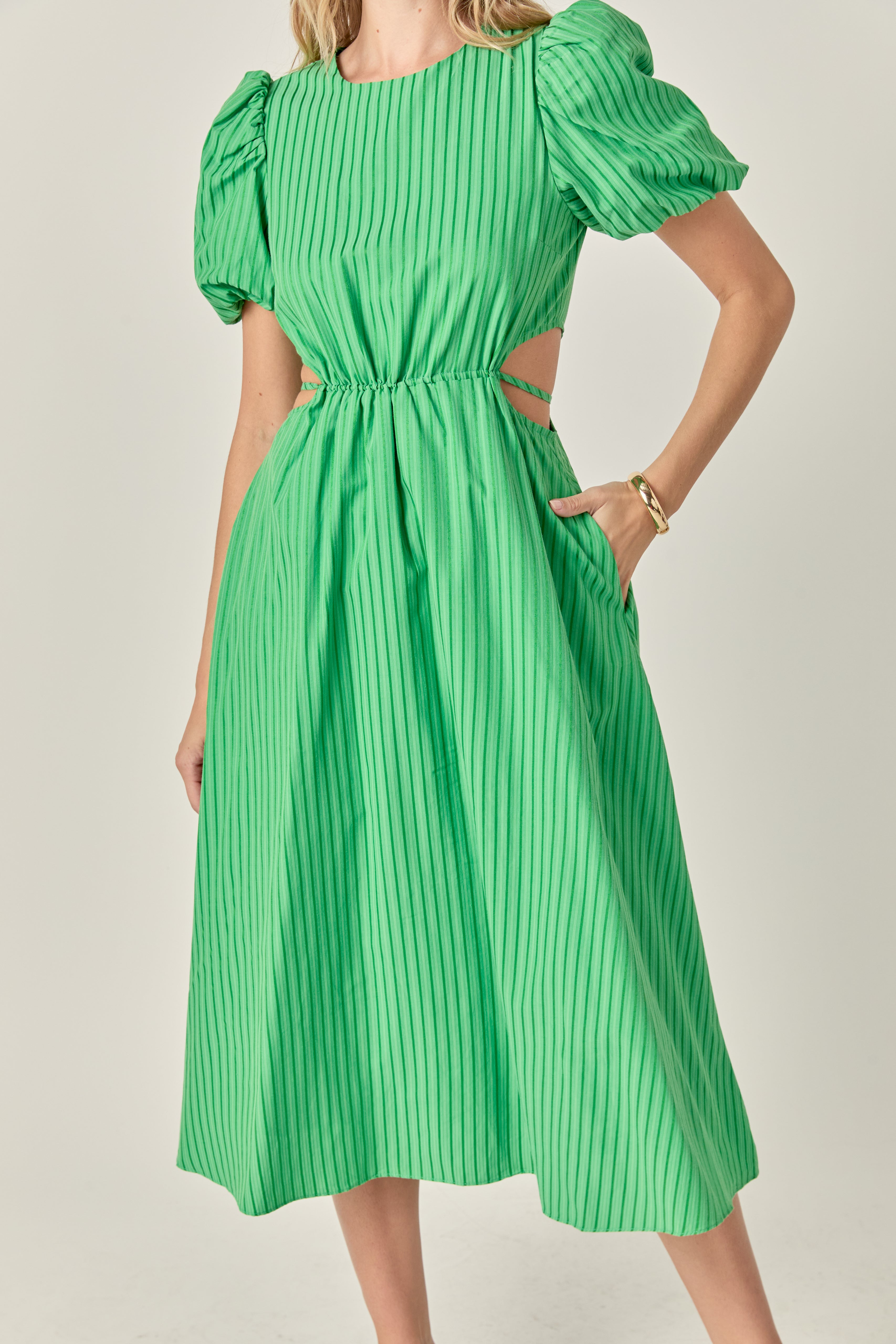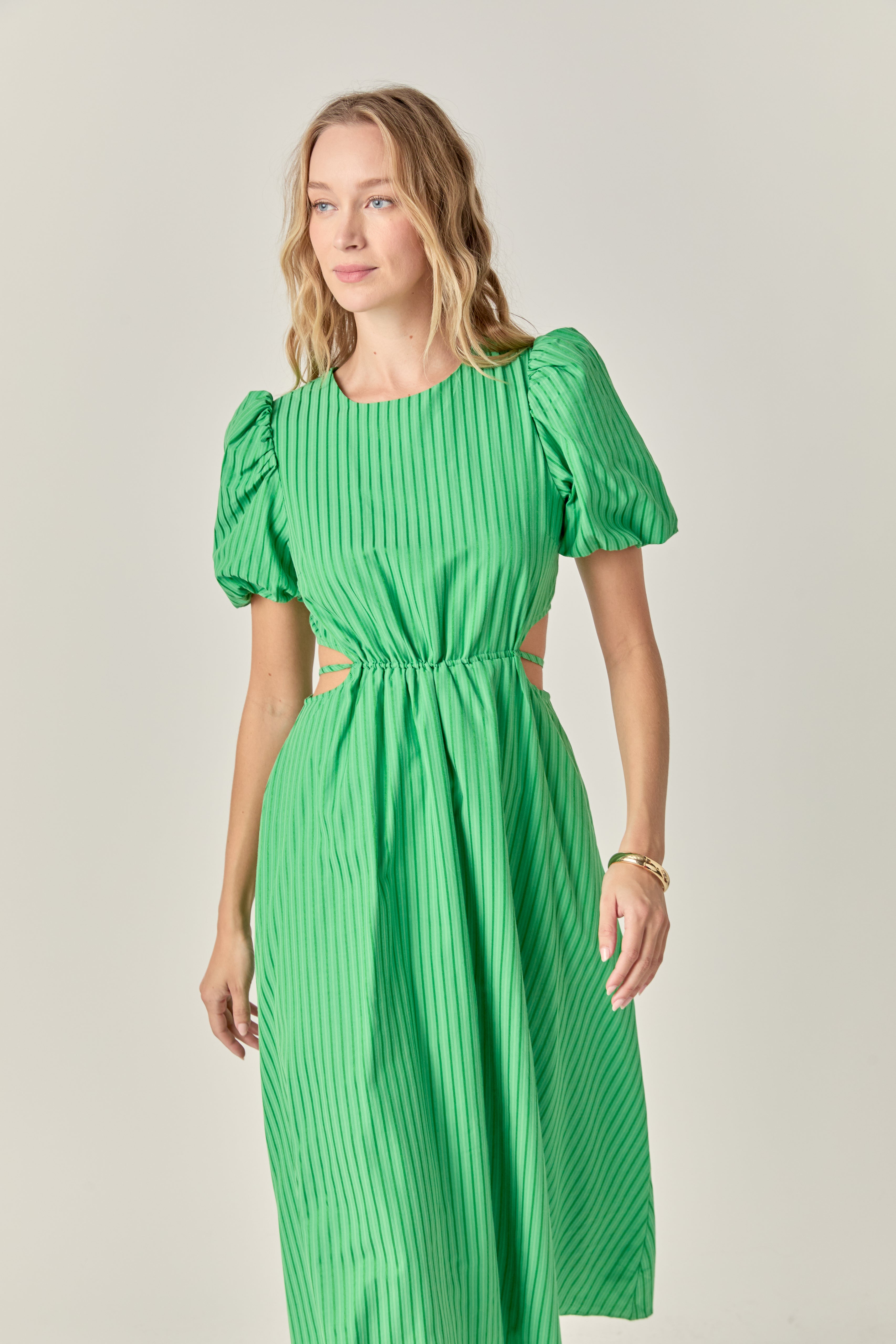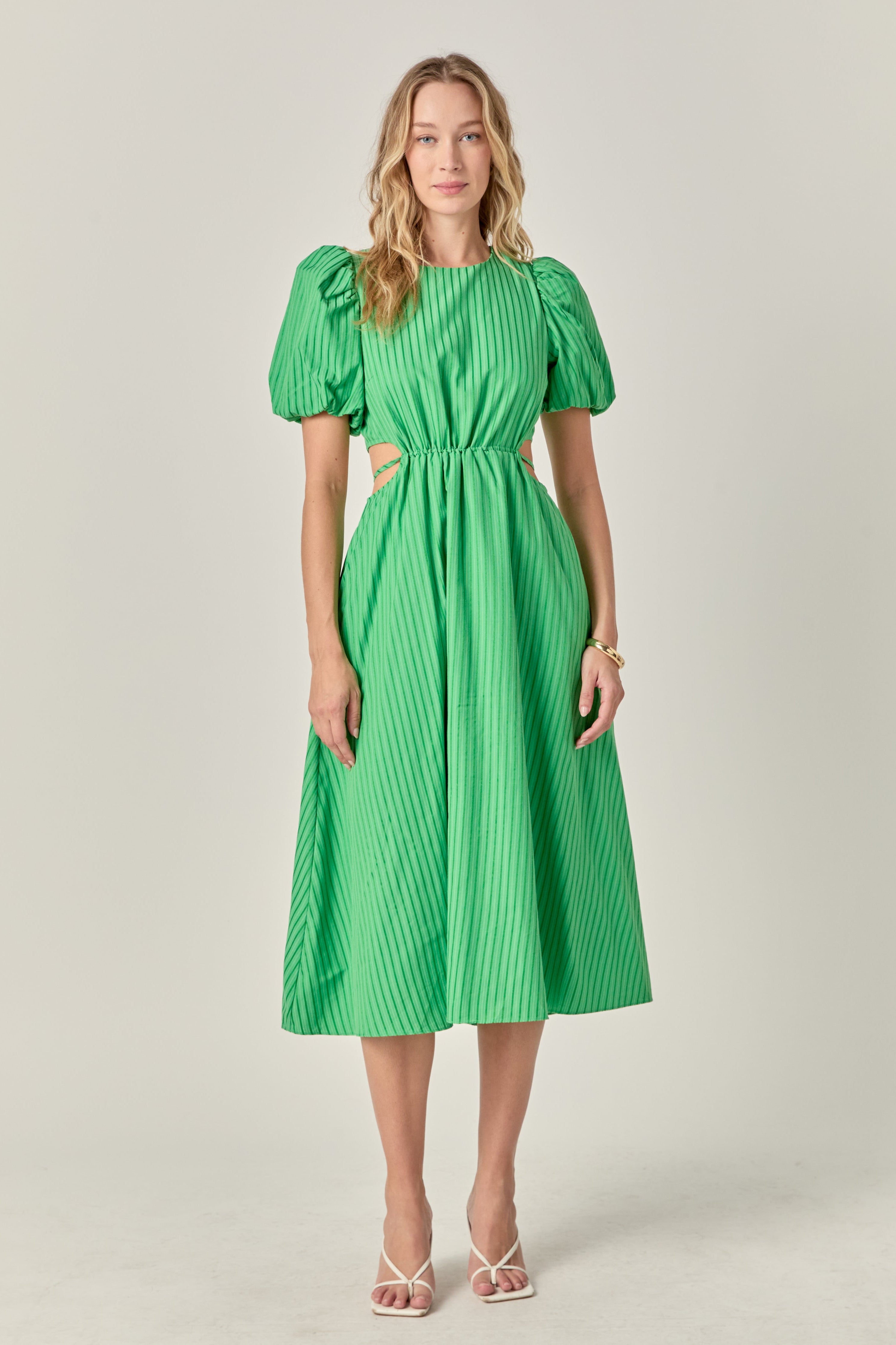Look stylish and unique in this Striped Cutout Maxi Dress. Featuring a round neckline, a blouson sleeve and a striped silhouette, this dress is ideal for any occasion. Its maxi length and cutout detail perfectly show your figure while keeping you comfortable. Highlight your curves and pair with your favorite sandals for a fresh summery look. Get lasting appeal with this timeless piece and shop now for the perfect summer dress.